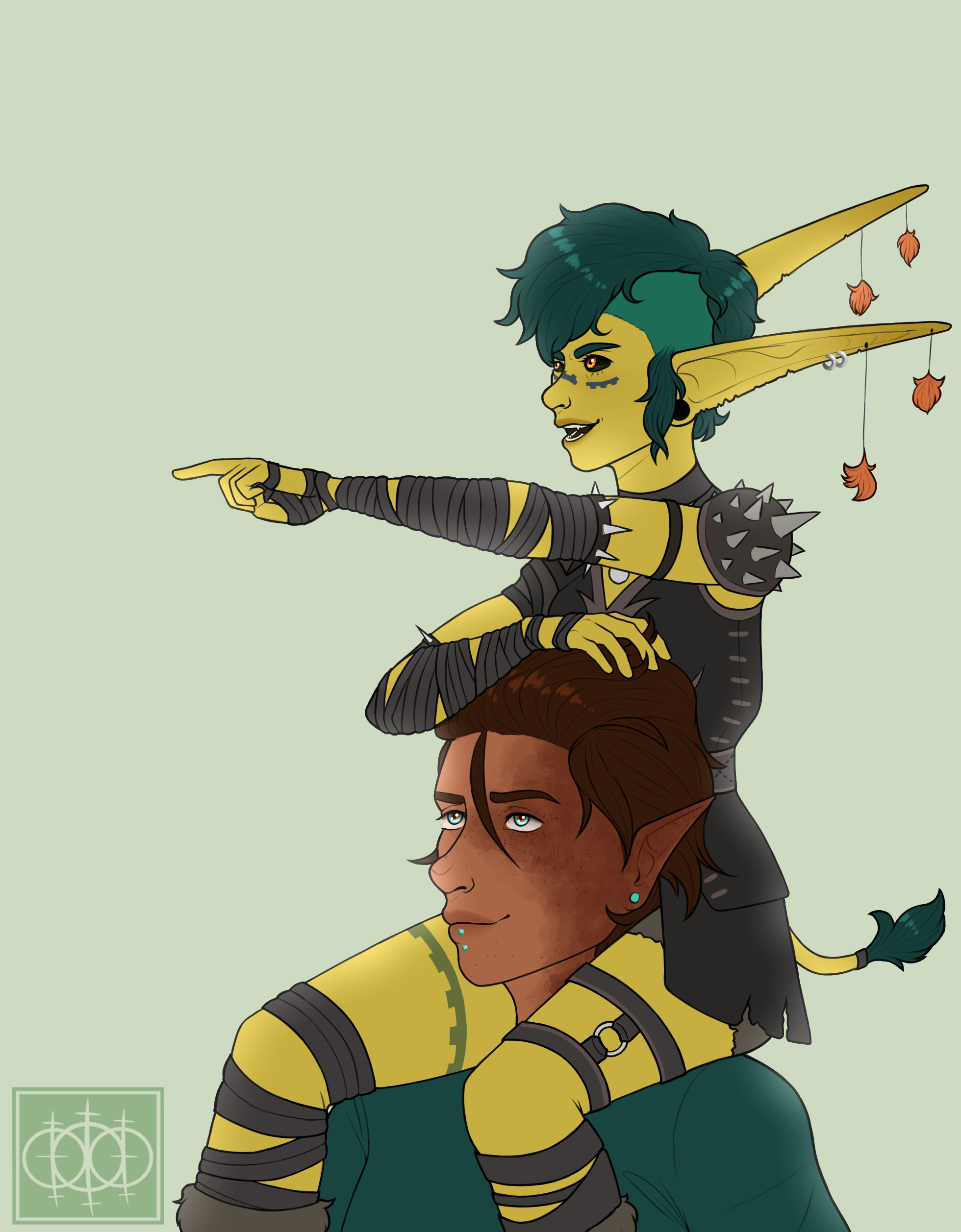 https://twitter.com/azvhaalk_Admit it._ _She's not so bad..._ Just Sylven and the party bard, Maverick having a time. I love that it's a general understanding that Maverick must be latched onto Sylven in some way, shape, or form at all times. Unless there's violence and crime to commit of course. lol Sylven is... slowly finding the quality endearing. Maverick belongs to https://twitter.com/azvhaalk0 Comments 0 Shares 8 Views -