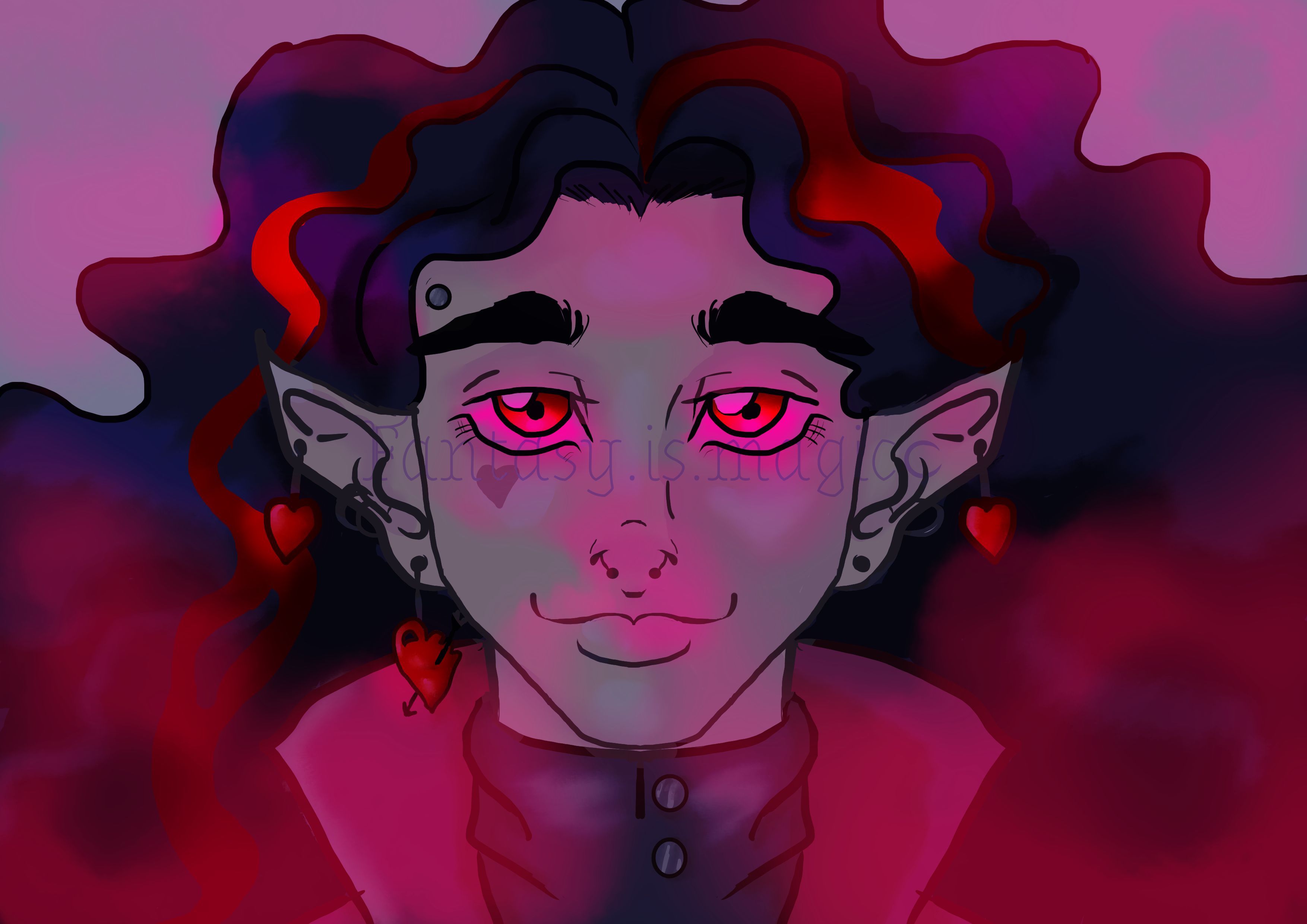 He uses he/ they pronouns and loves to spend his time alone with a book and a glass of wine, he doesn't really care for the other vampires' plots of climbing the "food chain" and the social hierarchy. They were more interested when they first got turned in the early 1800's, because of the deep desire to claim some power for themselves, but lost interested with time once they realized that it wasn't really worth the cruel acts they were asked to commit. So he isolated himself from the others of its kind, pushing away anyone who wanted to get close, expecially those who tried really hard. This may cause him loneliness, but its better than the rollercoaster of negative emotions that being near another vampire causes