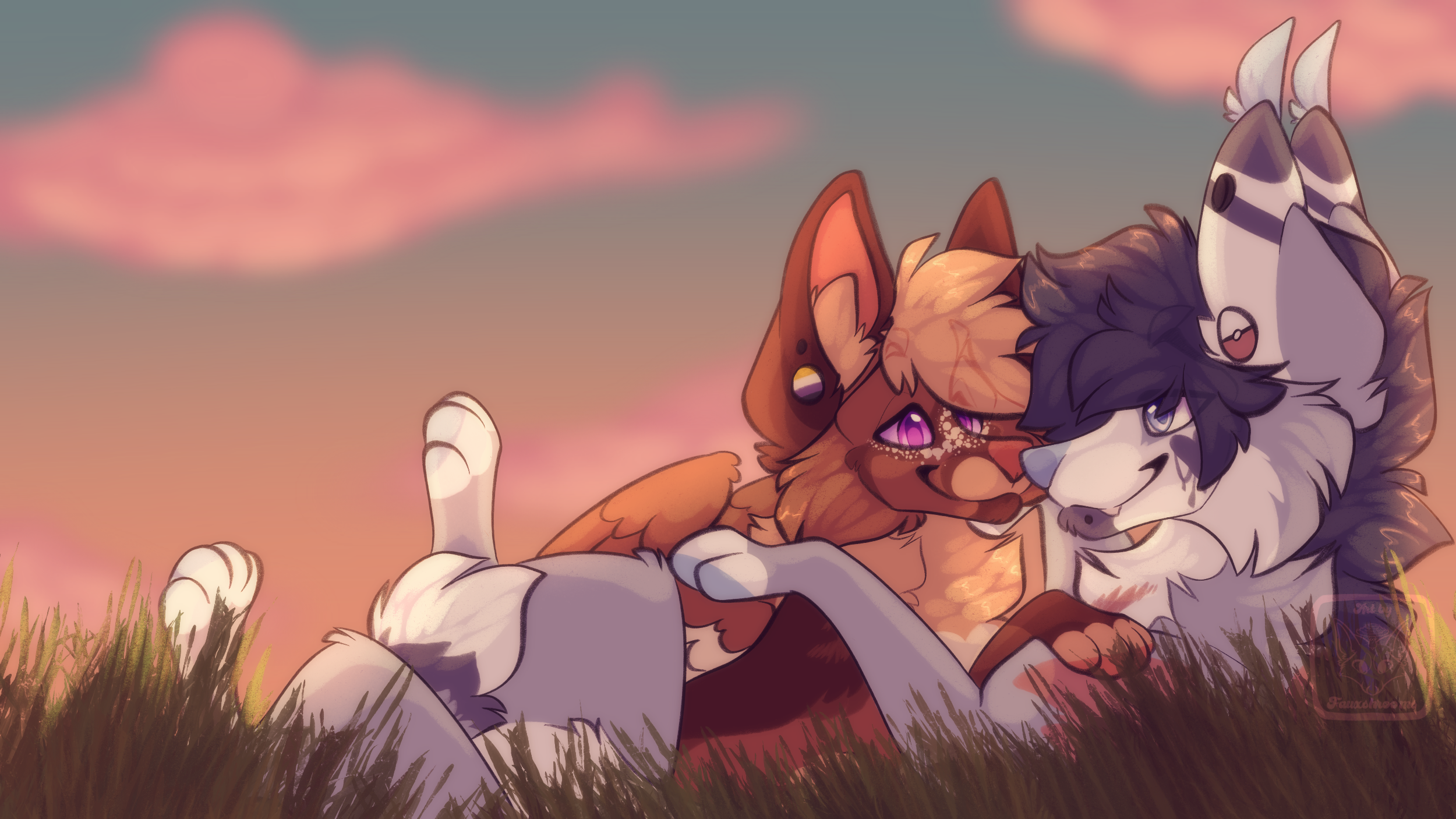 Gift art I did for my partner, RUCIFUR! Featuring my sona, Archie, and his sona, Rush.