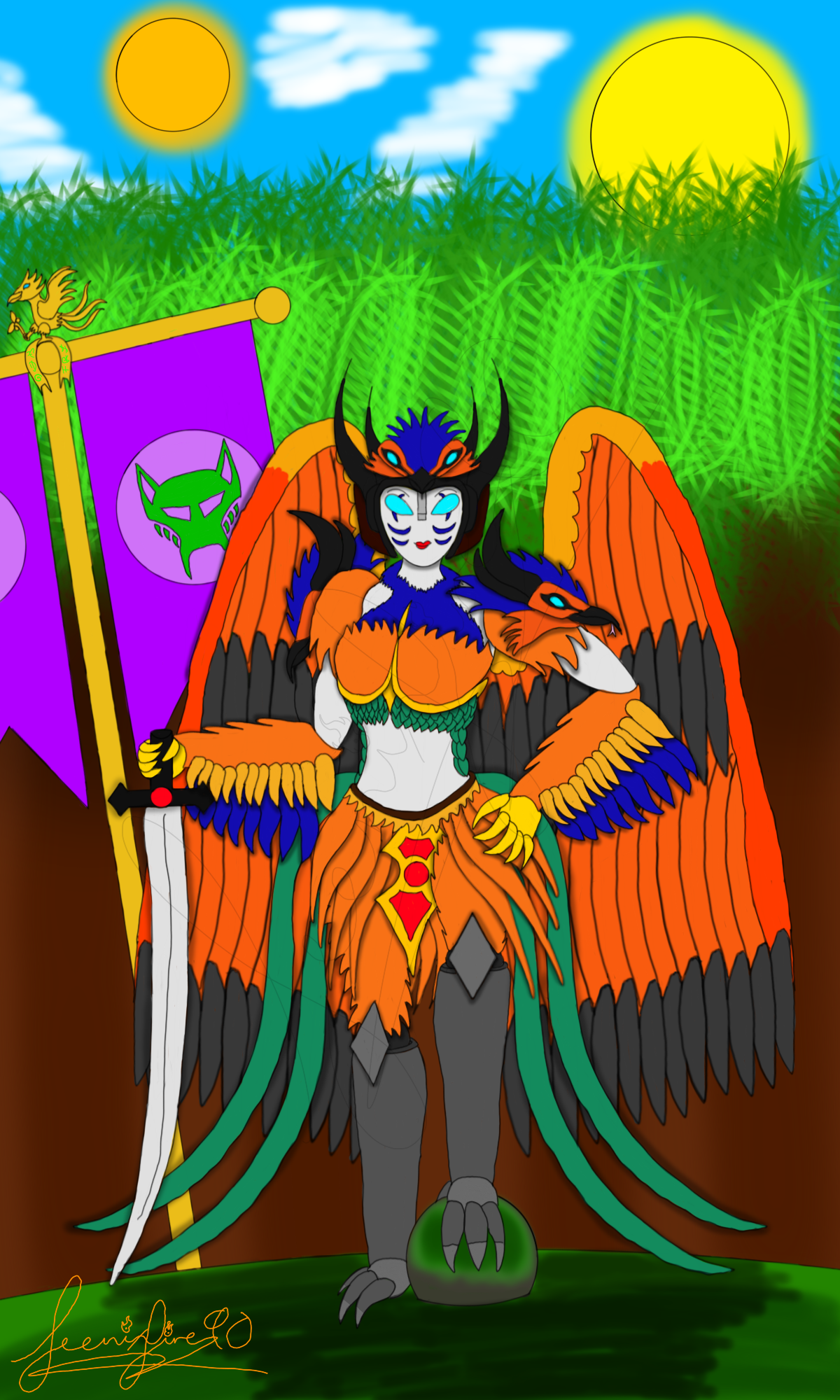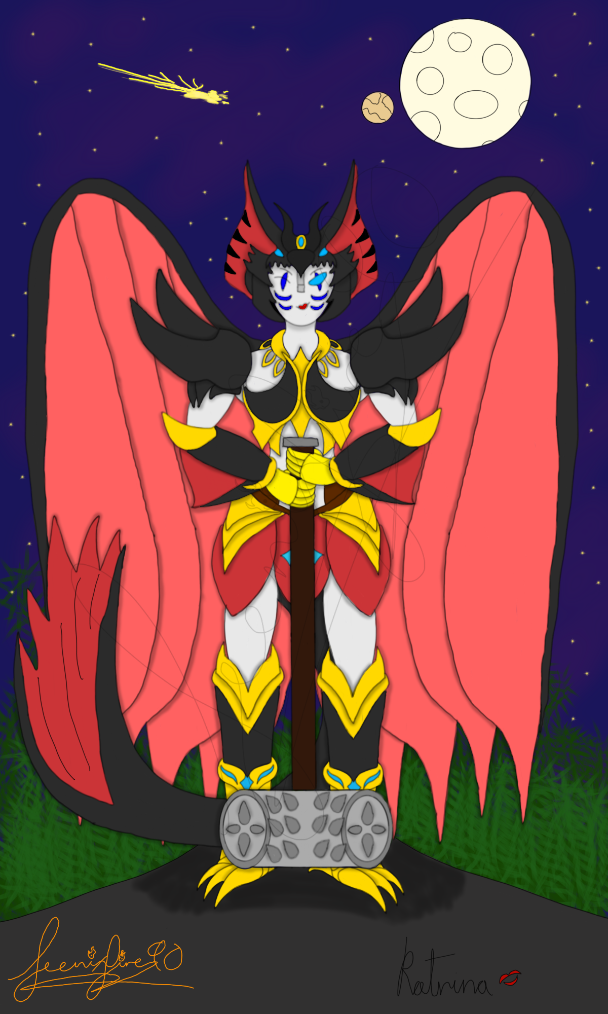 Her transformation is a Wyvern-Phoenix, a perfect mix of her dragon mech father and phoenix femme mother. Her closest allies are her older siblings, Lugia and Katrina.