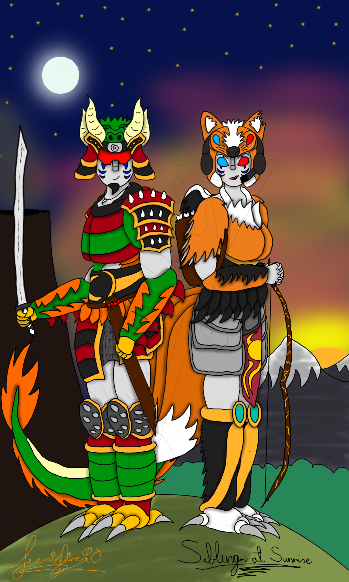 In the outbreak of the Mad Tyrant's war and the death of the previous Queen. Sunrise's two older brothers, Yangwu and Yatagarasu Lockheart travelled to the Temple to bring their sister back to take her rightful place as Queen and lead the war efforts against the Mad Tyrant. Now bear in mind, she was not told who she actually was. So all this was rather a shock.