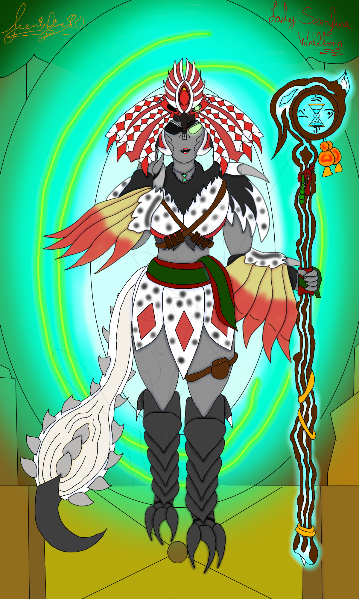 This friendship lasted for years, right up to the event that revealed to the public that she was a shifter. During The Trials, an event for 16 year old Eukarians to prove their worth and is a right of passage into adulthood (involving tasks such as hunting, agility and a grand monster battle). During the final Trial in which she was nearly killed by the chosen monster for the battle, she shifted into her Legiana mode to protect Kishaku from being killed... this was met by shock by both family and public and caused her own family to hide her away from the public eye.