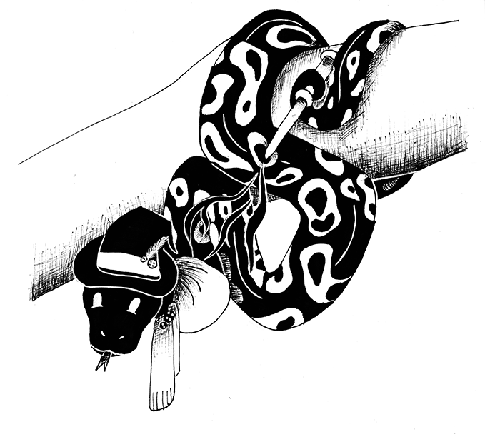 Man this was hard to draw and shade as the snakes body was black but I think it works.