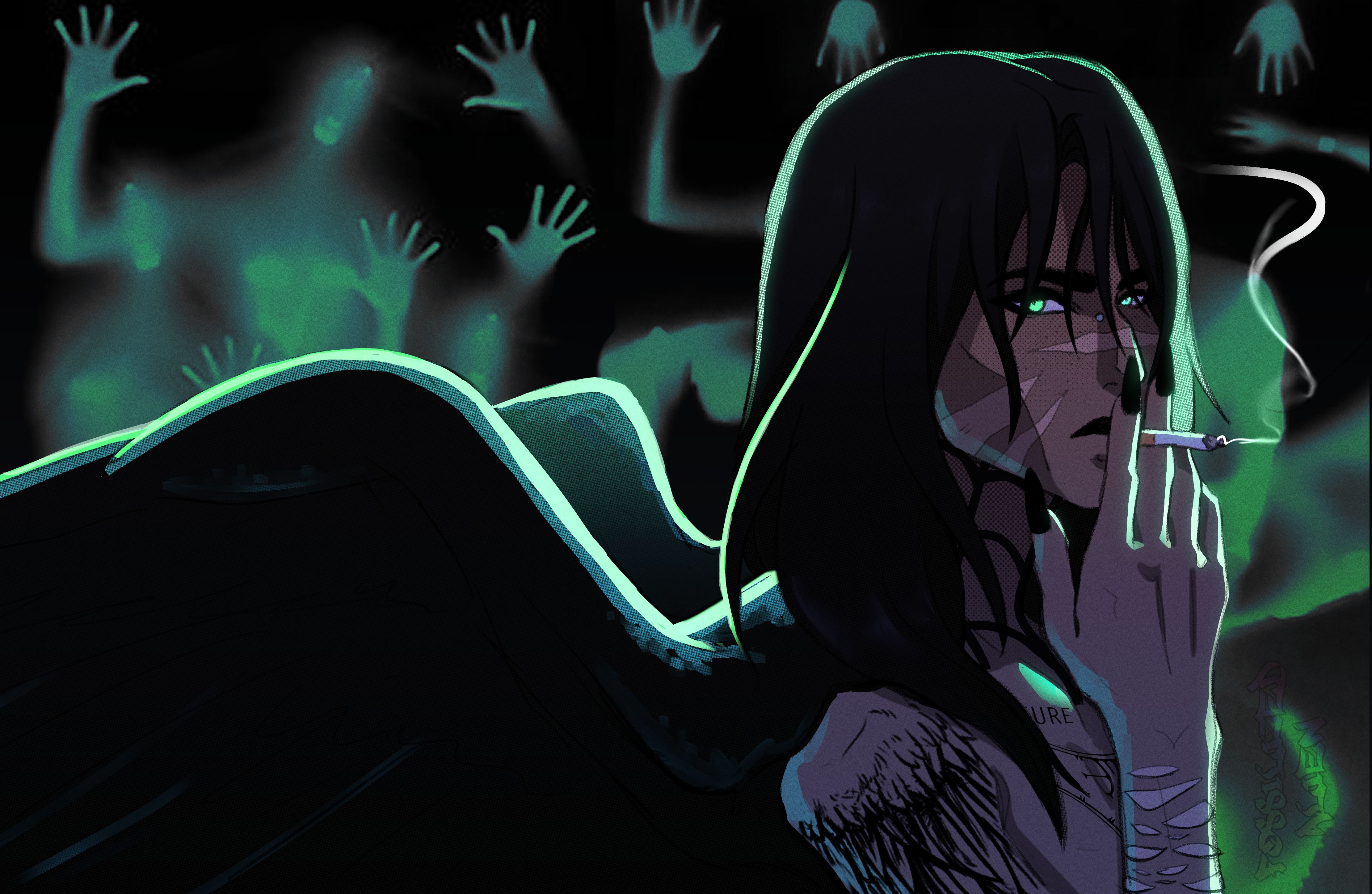 Eerie ( they/she ) is my main/fav OC who stars in my webcomic so expect lots of art from them.