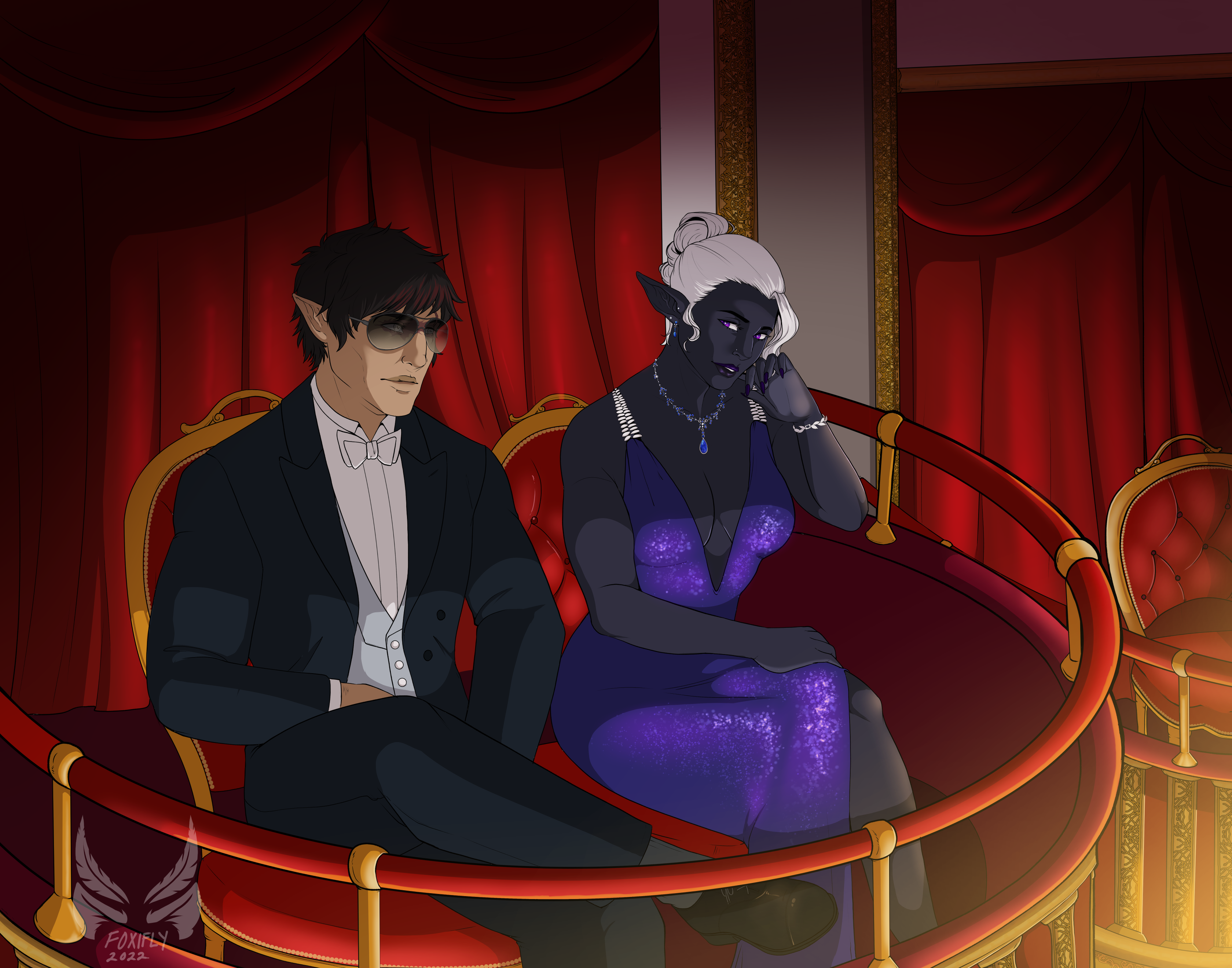 A commission for a long time friend of mine. Two of his caracters Tyriel and Meelia enjoying a fancy night on the town!