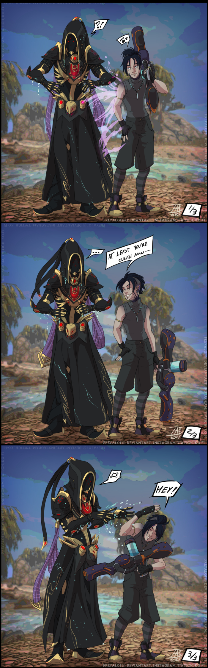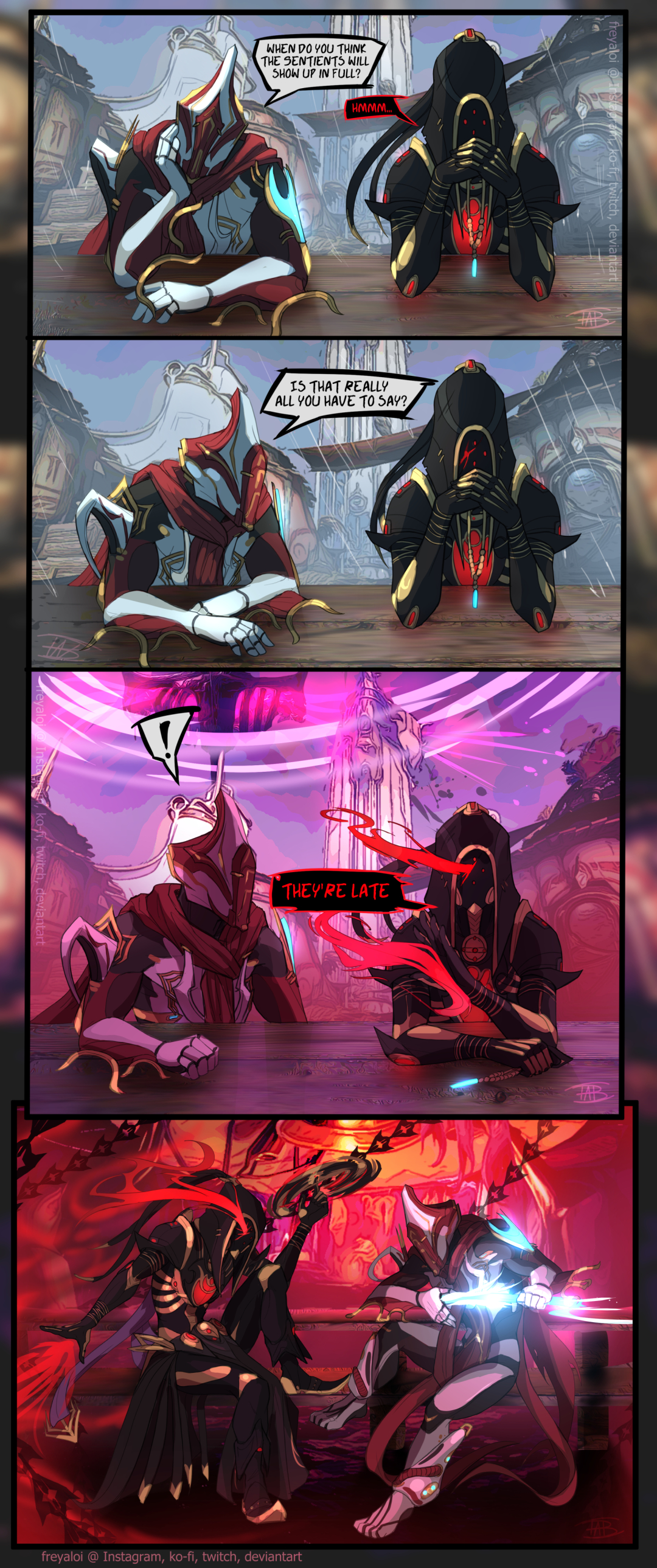 Interested in a commission? Check out my ko-fi page for info! Ko-fi.com/freyaloi/commissions"I'm not teaching you my ways with weapons just so you can faff around while I sleep..." Just some dogs day event stuff. I didn't get to play it when it was out last so was fun to at least try it out. My Harrow doesn't seem impressed though...honestly, my Tenno can be a little shit at times... Interested in a commission? Check out my ko-fi page for info! Ko-fi.com/freyaloi/commissions0 Comments 0 Shares 2 Views -