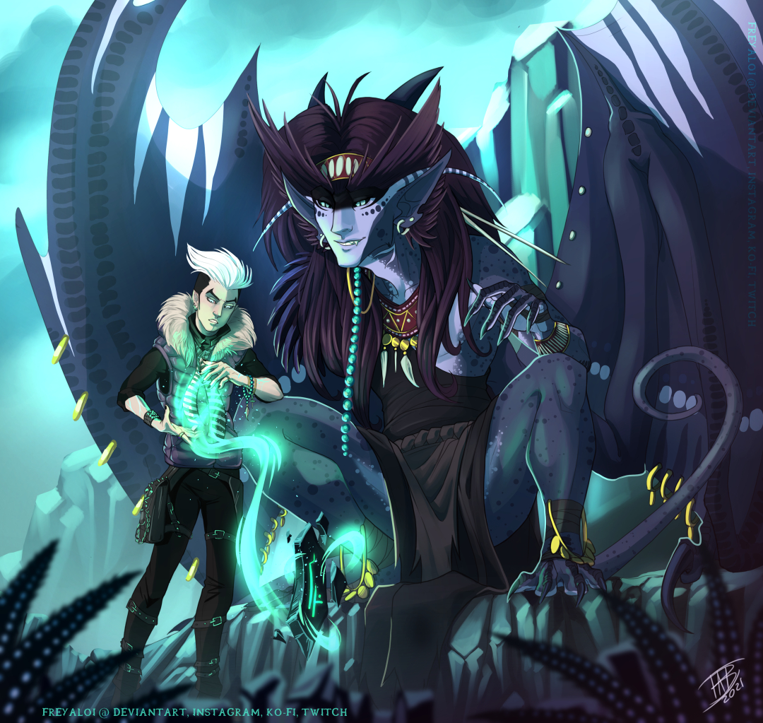 ko-fi.com/freyaloi/commissionsan illustration I've worked on while streaming on Twitch over the course of the last week. Had to draw these two interacting again, it's been so long! So yeah Abazis and Aamon on one of their exploration adventures. If you are interested in having your own character drawn in my style, too show off to your friends and fellow players, consider checking out my commission page and ordering one on there. Alternatively, you can DM me if you're looking for something specific. ko-fi.com/freyaloi/commissions0 Comments 0 Shares 3 Views -