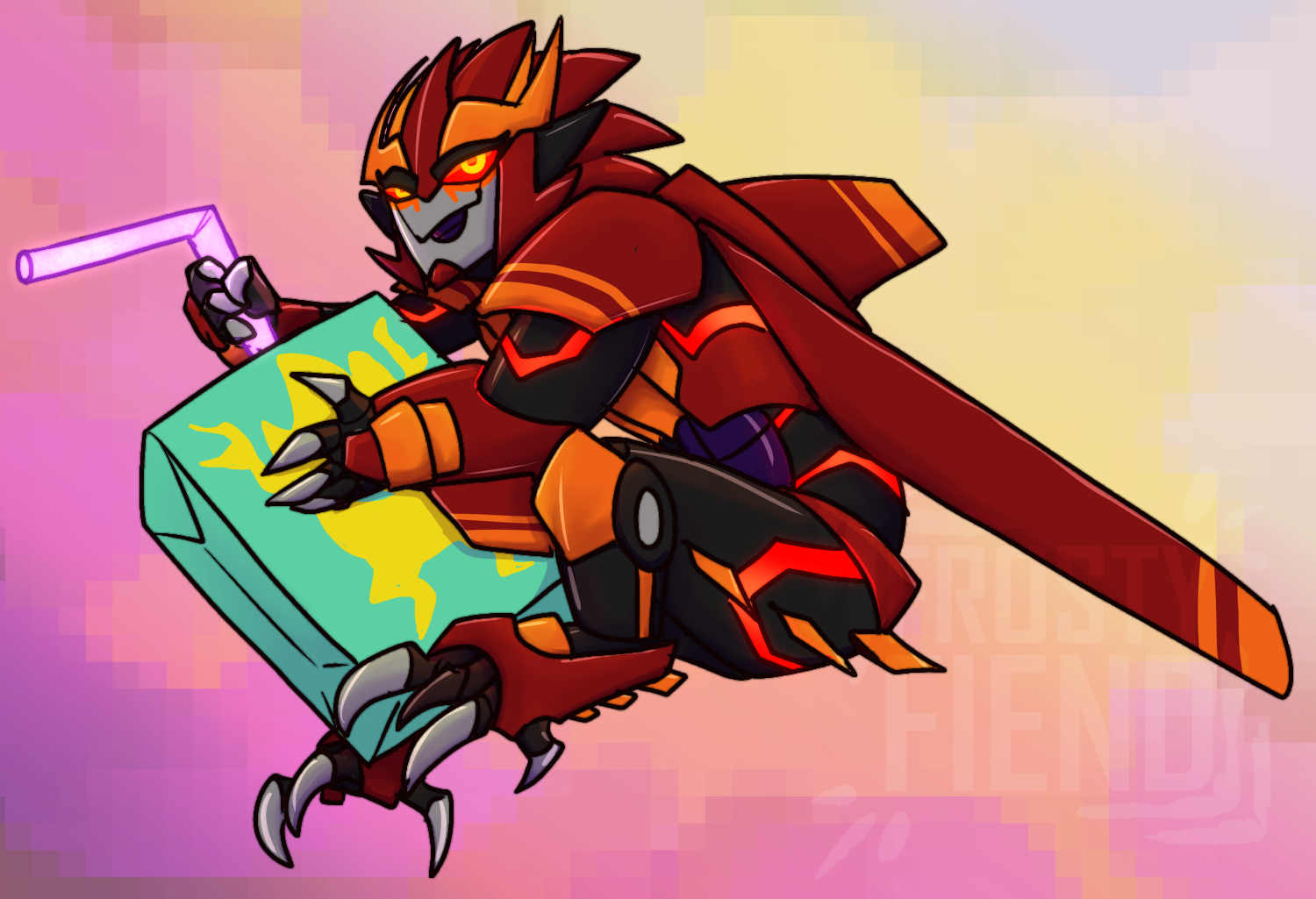 Drawn in 2022My Transformers OC, Firehawk, sipping on one of those Kremzeek Juice Boxes from the comics. His leg is the wrong color but shhhhhhh. [See full res image on my Ko-Fi](https://ko-fi.com/i/IW7W4DLGB6) Drawn in 20220 Comments 0 Shares 8 Views -