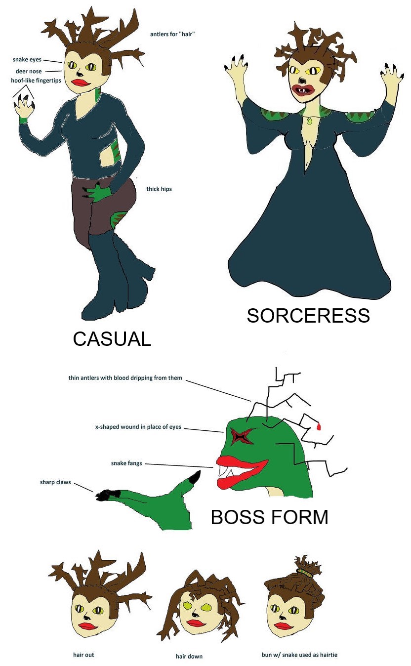 [Play the ππ₯π·π¦π―π΅πΆπ³π¦π΄ π°π§ ππ¦ππͺπ° prototype here.](gabethedeadfish.itch.io/aoh)Concept art for Elka, a villainess who would likely appear in an ππ₯π·π¦π―π΅πΆπ³π¦π΄ π°π§ ππ¦ππͺπ° sequel. Elka is a Lust Demon and the second-in-command to Demon Lord Tempura. She has a mix of snake and elk features. She has the ability to grow large, which she would to to try to stomp Helio to death. When this fails, she reveals a more snake-like form that shoots projectiles at him while he stands on her giant hand. [Play the ππ₯π·π¦π―π΅πΆπ³π¦π΄ π°π§ ππ¦ππͺπ° prototype here.](gabethedeadfish.itch.io/aoh)0 Comments 0 Shares 8 Views -