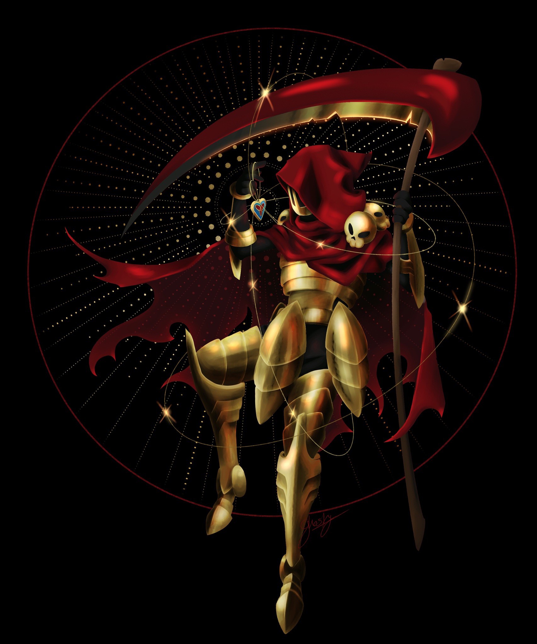 Specter Knight of the Shovel Kight games is floating in a black void framed by radiating dots issuing from his held locket.Specter Knight of the Shovel Kight games is floating in a black void framed by radiating dots issuing from his held locket.0 Comments 0 Shares 5 Views