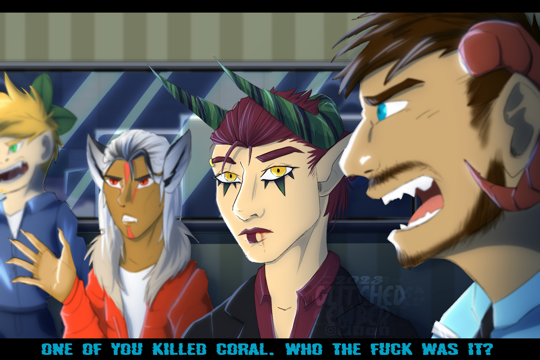 Time Taken: 4 hoursEdit 22/12/22 The descriptions are really weird to work on here lmao and I've just realised that a lot of the art I have on da was made on my phone, and I no longer have the files for them T_T so I don't actually know what to do there __"Hush now, hide, all you little ones__ __Rush now, into the middle of nowhere__ __Singing and laughter will die__ __Dreamless sleep, follows the Nowhere King__ __When his kingdom comes, darkness is nigh__ __Quiet, crawl to the in-between__ __Silent, secretive feeling__ __Of fearsome hatred that reaches the skies__ __You will bring joy to the Nowhere King__ __When he sees the light leaving your eyes"__ I spent the day binge watching Centaur World on netflix, and I honestly didn't expect such a flawed show to have such an epic villain. I'm in love with this goopy bastard. Drawn With: Clip Studio Paint Time Taken: 4 hours0 Comments 0 Shares 6 Views -
