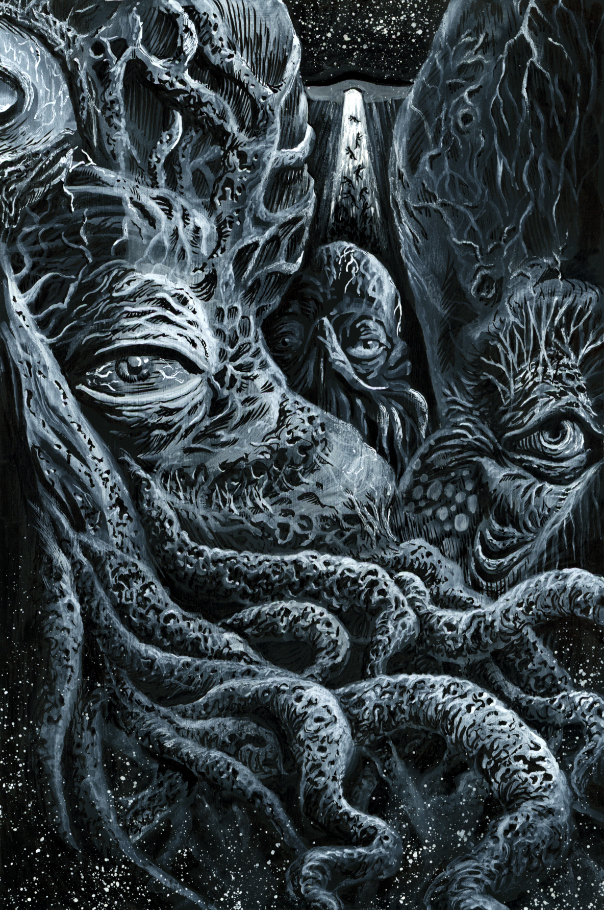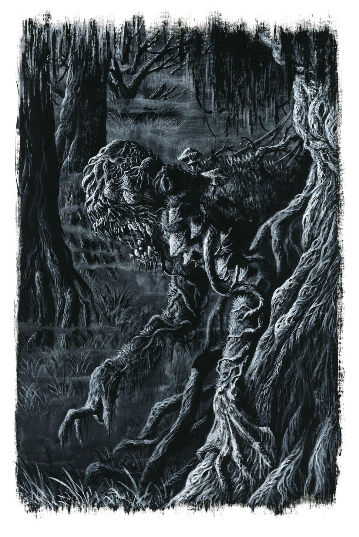 White gouache over black gesso on paper.A thing... which just so happens to be from a swamp! White gouache over black gesso on paper.0 Comments 0 Shares 6 Views -