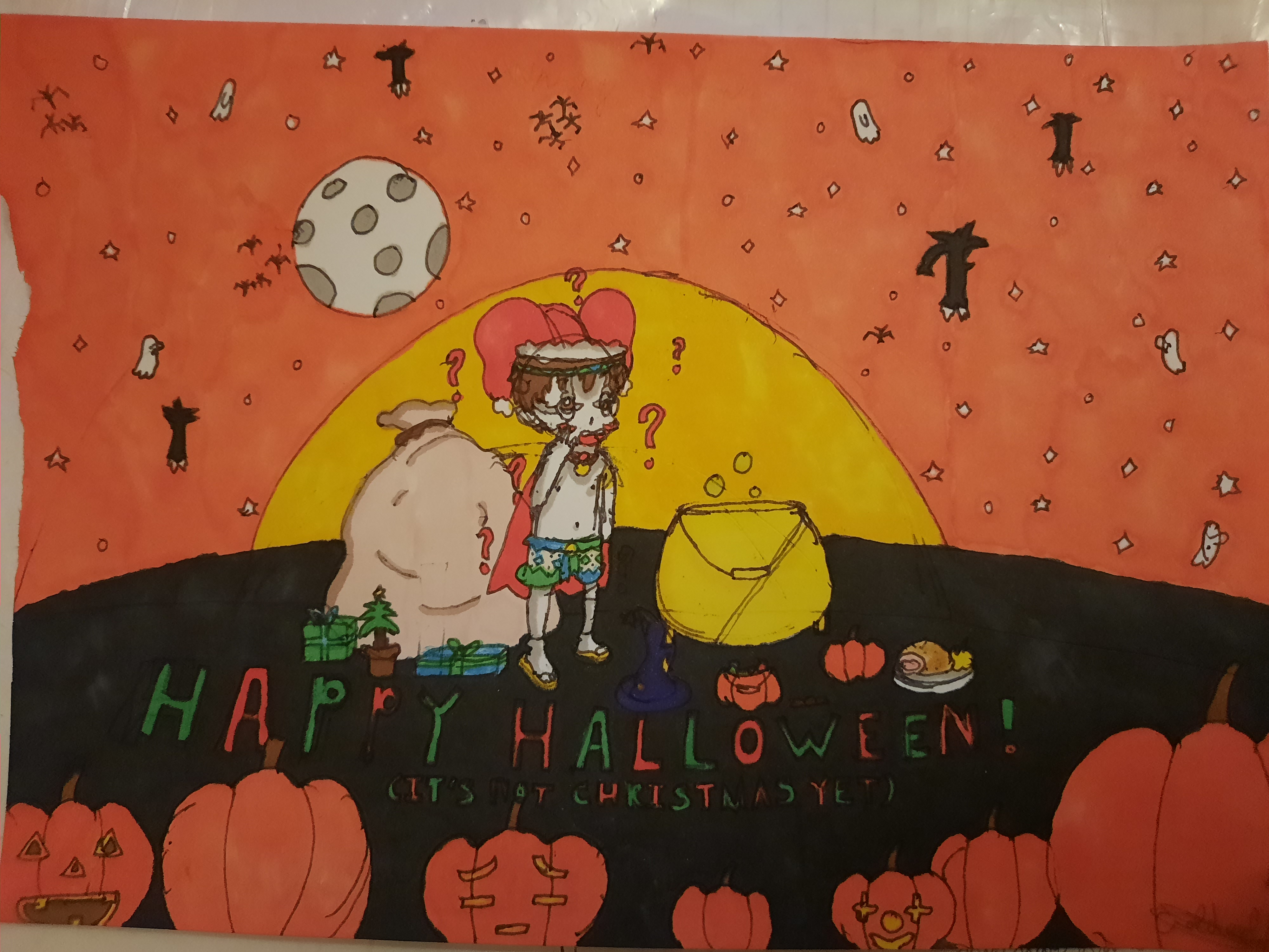 And a Happy Halloween.Merry Chri-- Oh wait! My OC Tribochool has just gone to the wrong season. This is Halloween, kiddo. You can just ask for Trick or Treating and all of that good stuff on Halloween. Although, to be fair he did wear a vampire costume and a Santa hat. And also, he still has most of his jestery tribe uniform. So I guess I'll give him a pass from now on. We wish a Merry Spookiness And a Happy Halloween.0 Comments 0 Shares 2 Views -