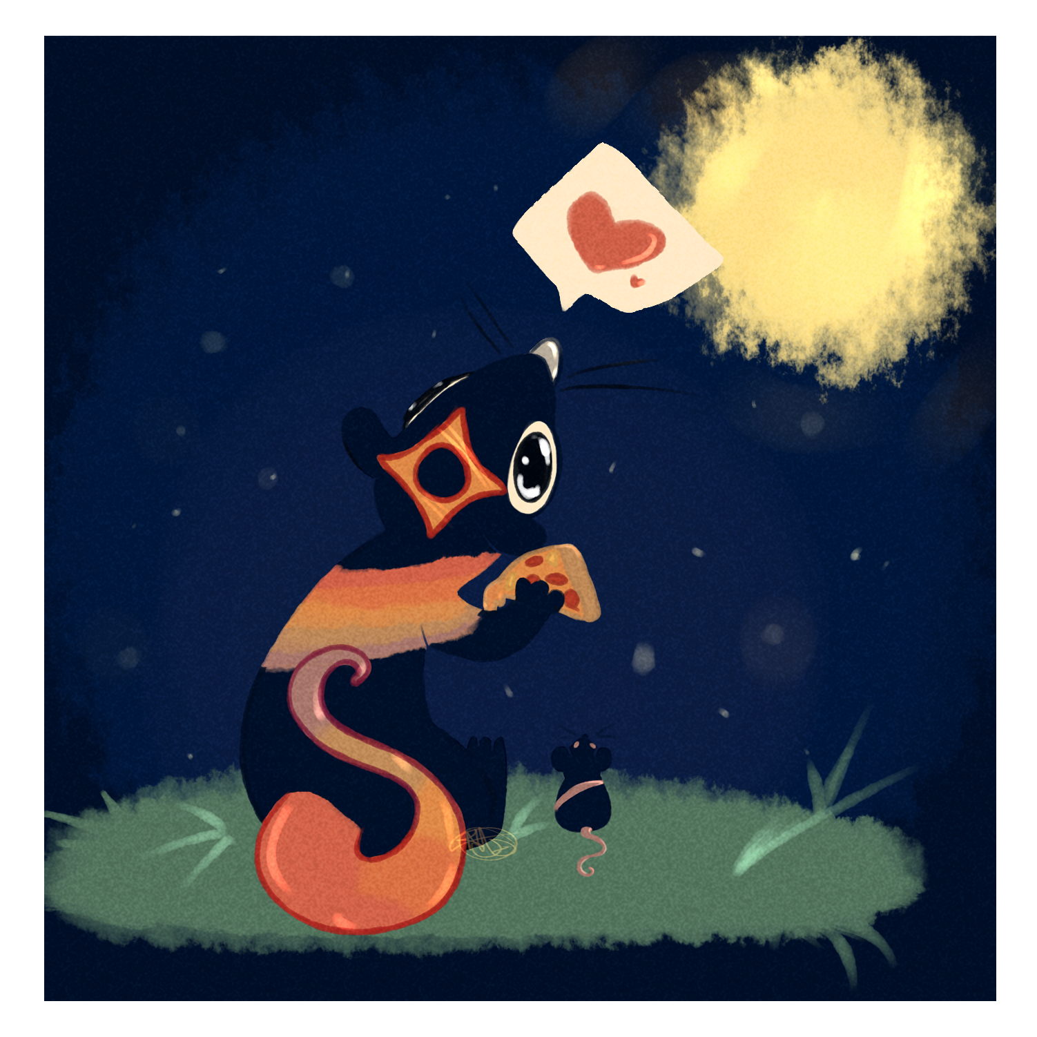 Art and characters © AnarchyGreedJust what started as a small doodle to get through a rough day . It turned into something fun and silly. The little mouse asked "My king what shines so bright way up high?" Looking at his small companion with a grin. "Why it's the tastiest of cheeses in the sky" The little mouse knew his king was not the brightest, but his king was by far the kindest. So he smiled and nodded "I see I see, I thought it were a Pizza Pie" he said with glee The King laughed with an out cry "How silly a pie in the sky! Now that I'd love to see!" They went on to enjoy that night thoroughly. Art and characters © AnarchyGreed0 Comments 0 Shares 15 Views -