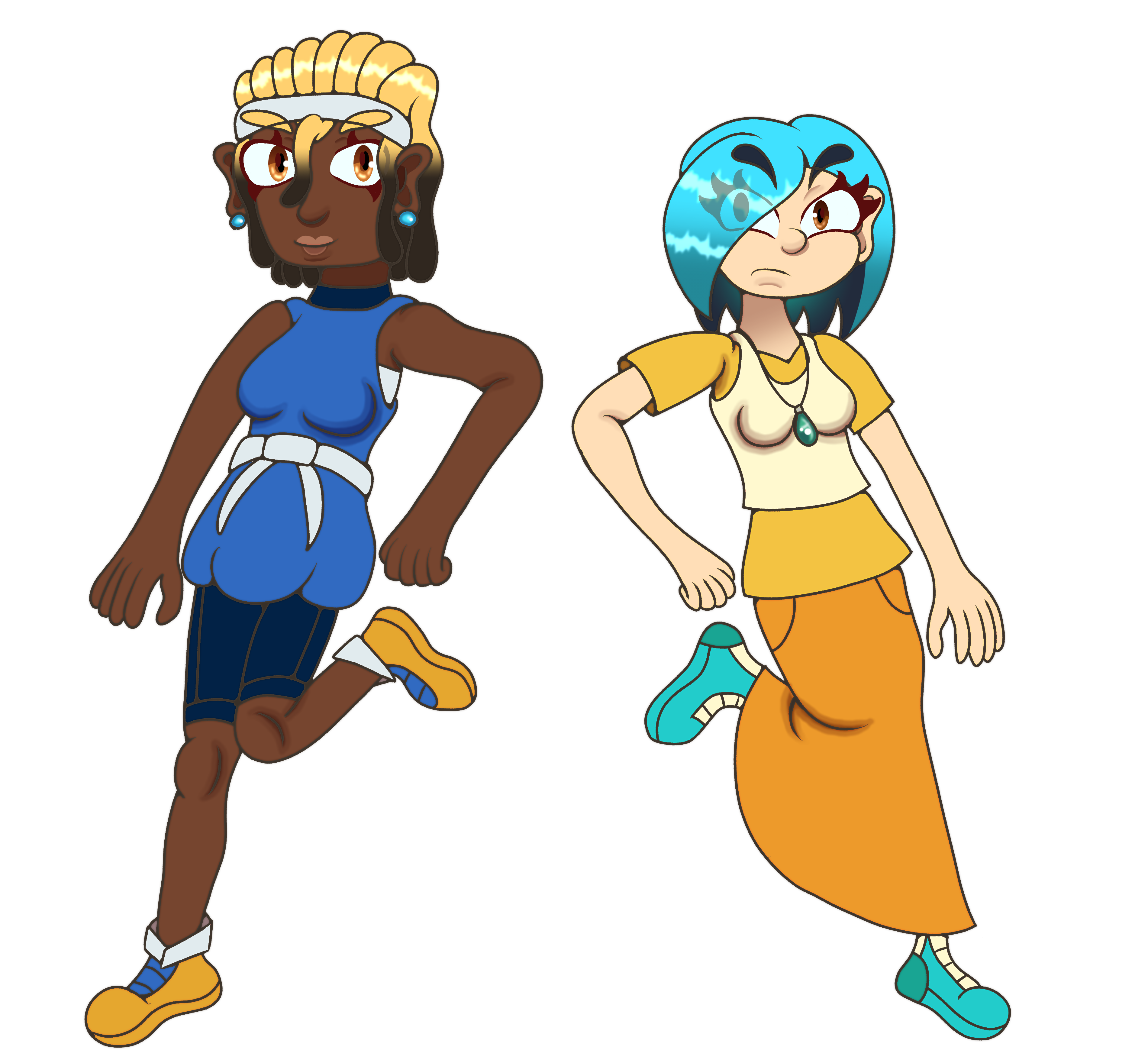 Two OCs from a dream, Drifters who visit Melicen, the Timeless World. Savanna Stone, She/her and Cyan Asai, She/her.