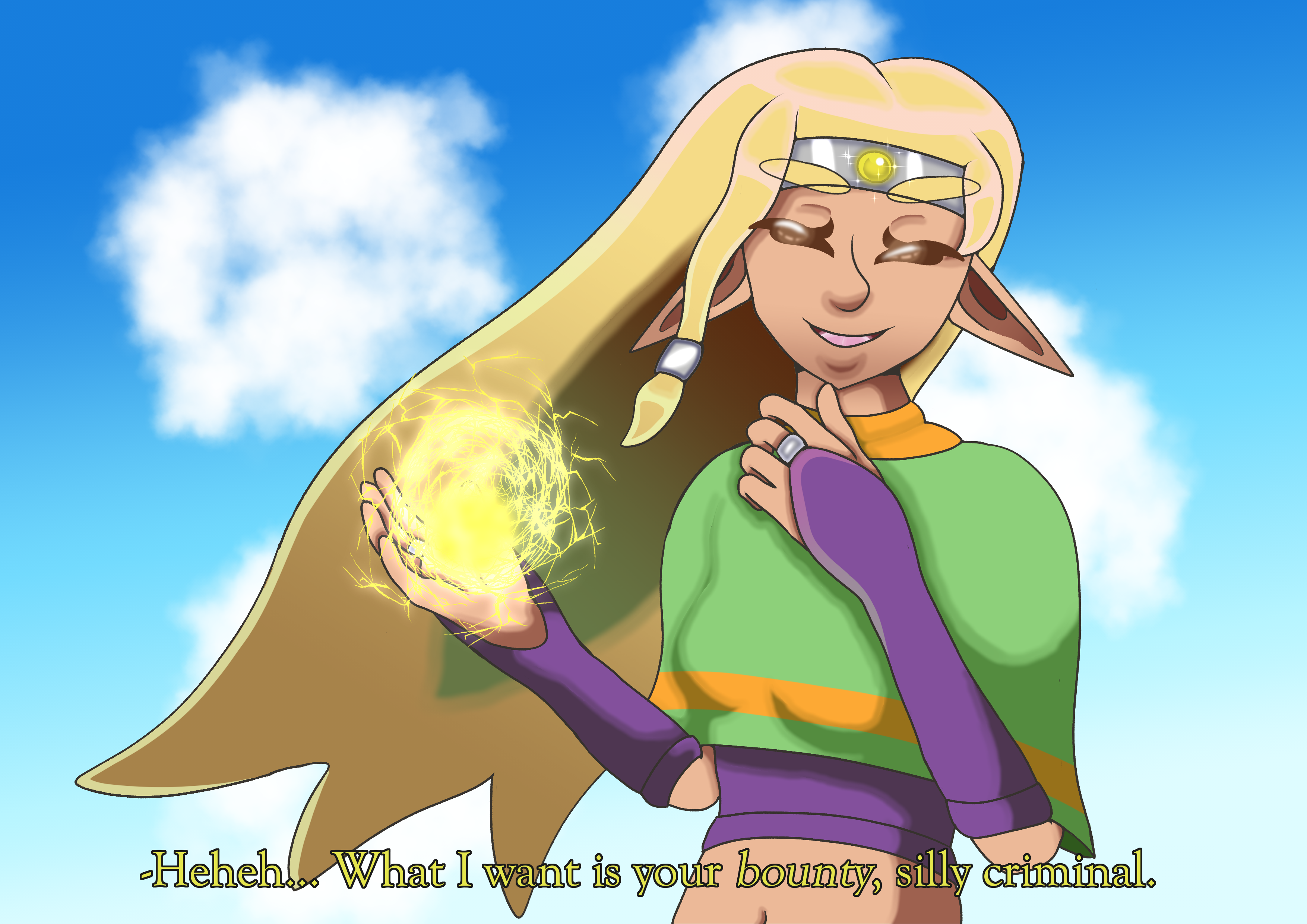 Shading/expression experiment for Actually Terrible Elf, Jubilee Tippi. A Stormbringer mage who's always a bit too eager to shed someone else's blood, especially if they have a bounty for her and her team to collect.