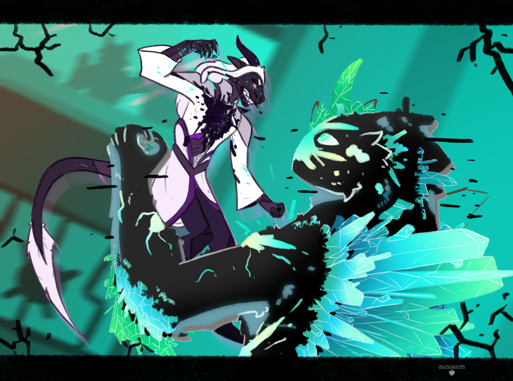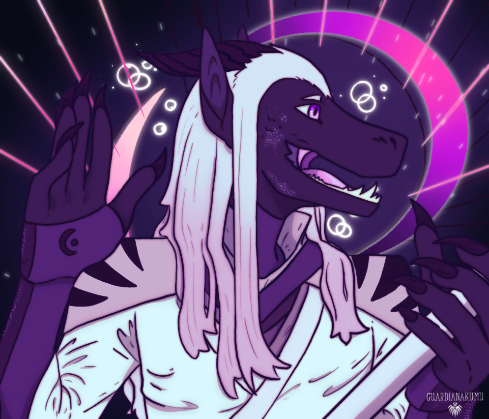 So, Akumu is obviously in this AU cuz there’s magic. There is Jeti temples but their abilities is strictly telepathic and simple levitation spells. This is true for most species. There is no dragocian Jeti, although, but they can use these abilities through other means, like technology-wise. Akumu, like all other Royal Dragocians are considered advanced mages with their own title, “Guardian.”