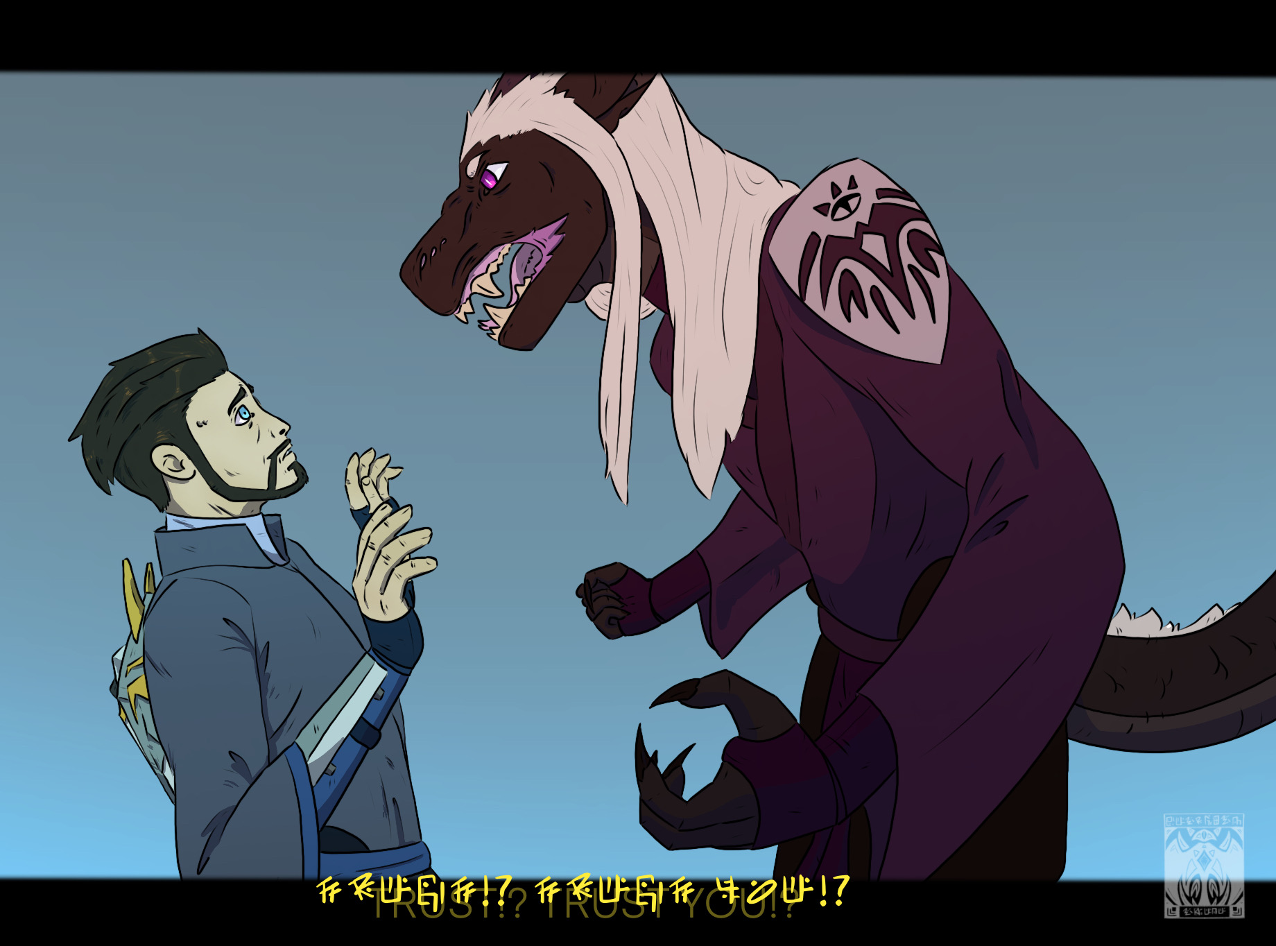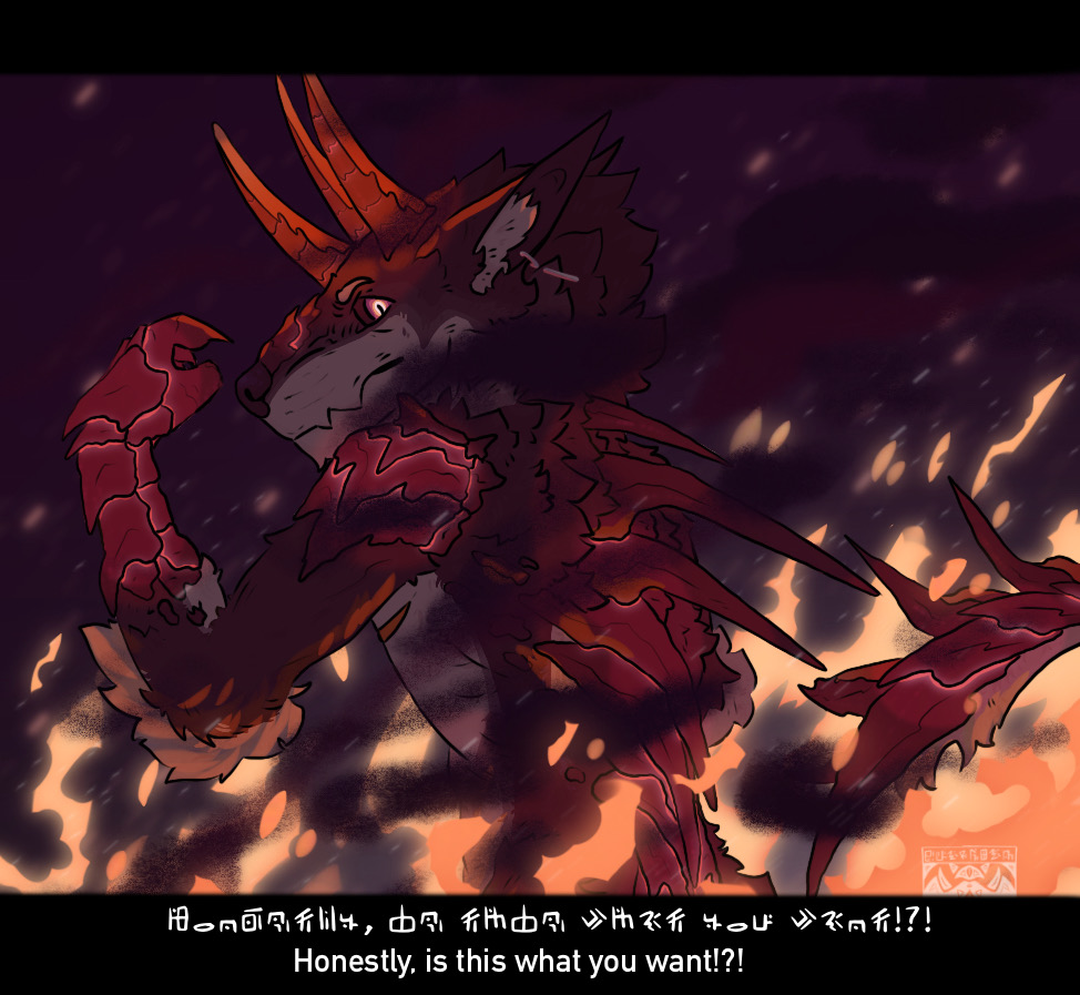 **“TRUST!? TRUST YOU!?”**, Akumu roared in her dragocian language, causing Silver to take a step back. Marlowe and the rest of group could only stare as Akumu lost her cool for the first time in years. And it was towards her old best friend who betrayed her a few years back. Her expression was sharp and angry. Teeth was bared and Marlowe could swore he can hear her quietly hissing. Her tail swished back and forth, similar to a cat’s tail.
