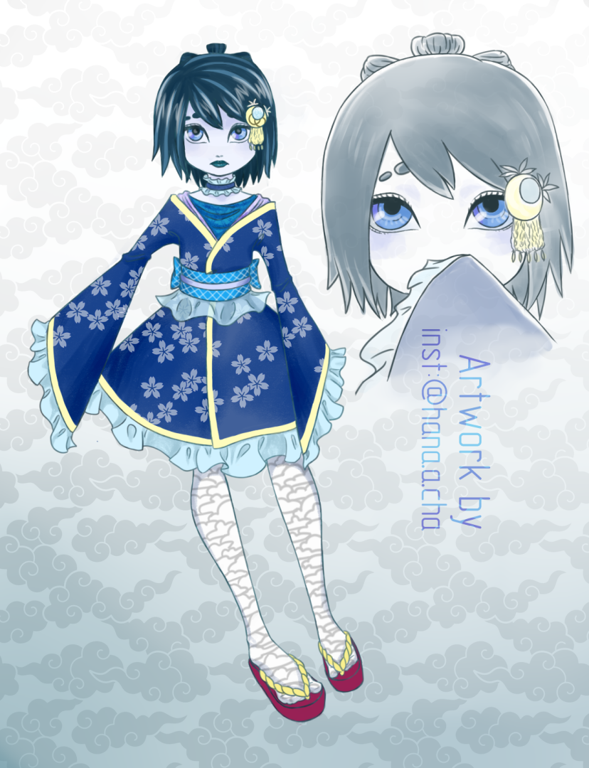My OC, Rion, reimagined as daughter of princess Kaguya and drawn in Ever After High concept art style (at least, that's what I was going for)