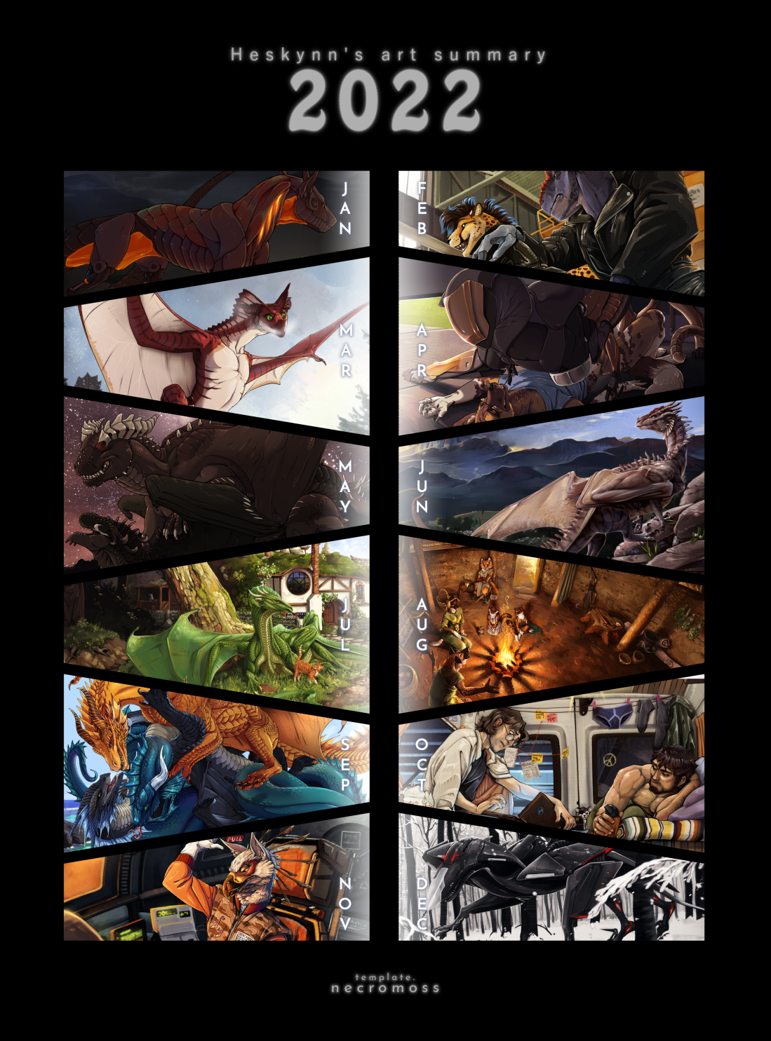 I wasn't going to do this for 2022, because I kept VERY bad track of what art got done when, and some of this hasn't even been posted publicly yet (whoops) but I fished around and this is close enough to what got done in what month X_xI wasn't going to do this for 2022, because I kept VERY bad track of what art got done when, and some of this hasn't even been posted publicly yet (whoops) but I fished around and this is close enough to what got done in what month X_x0 Comments 0 Shares 2 Views