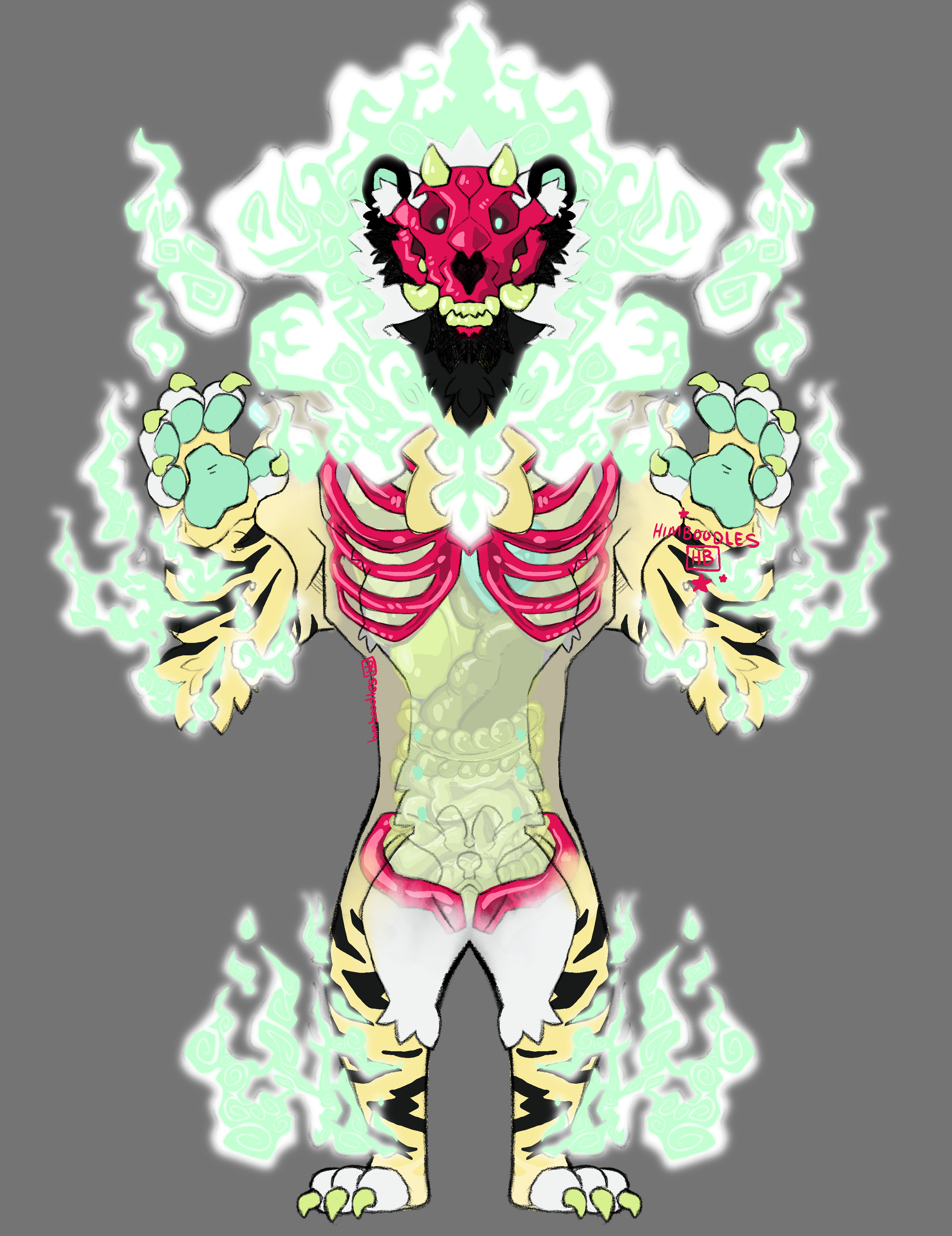 Tw// See theough body. Organs are visible. No blood or slashes though. This is my fursona, on October. For the spooky months, he gets a spooky look. And its never too early for spooky! He is sentient incense smoke, which possessed a Smilodon skull his wife has in his posession. He obtained his smilodon form. But during the month of October, he cannot hide this form. His stripes turn black and scented smoke seeps from his body. He is still Snythe. Just spooky. Lol0 Comments 0 Shares 2 Views -