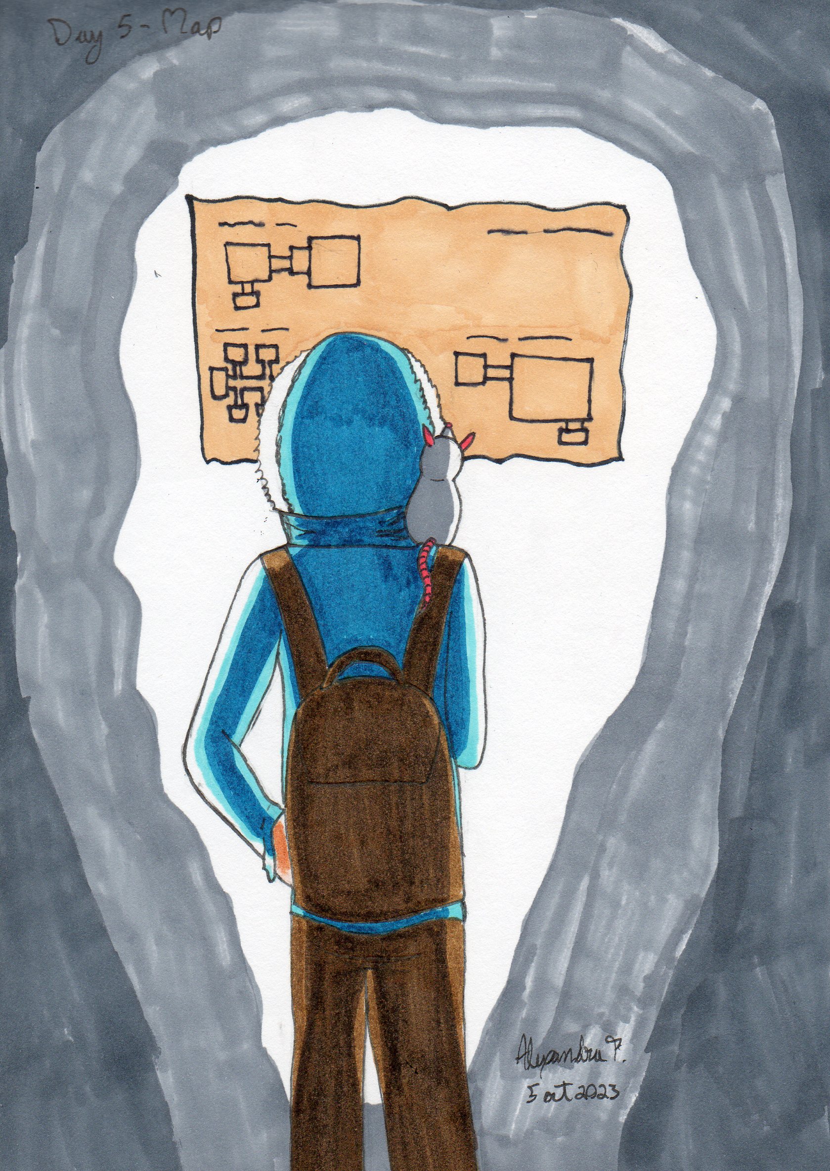 Will and the rat Pop, from the game The Hanged Man, looking at a map. It's not the map of the game, I remember the real map to be quite complexe. I really should finish that game one day.