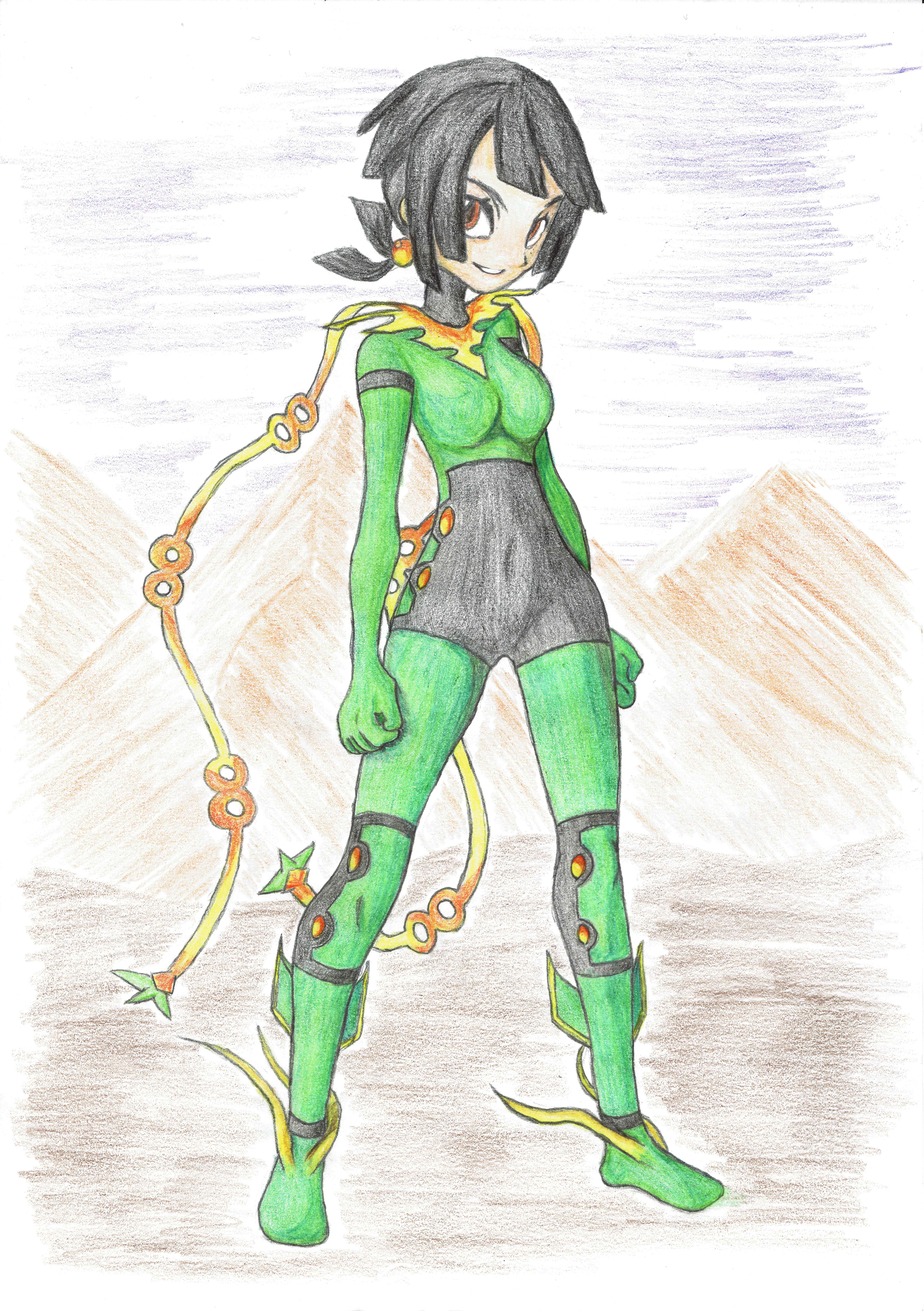 This time I have a very special Kanto Pokegirl in the spotlight. Abducted as a small child, Green had to fight for survival in the Pokemon World. Scraping by as a spy and a thief she came across a Pokesuit in the shape of Nidoqueen which enhanced her abilities even further.