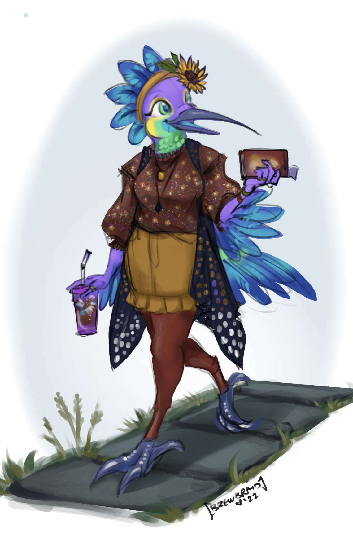Sketch of one of my Tea Unicorns! Jensen is a cocky-but-lovable passionate and earnest environmentalist, with a deep love for his rocker girlfriend Khalila<3 His horn and glass parts are filled with Vanilla Mint tea.