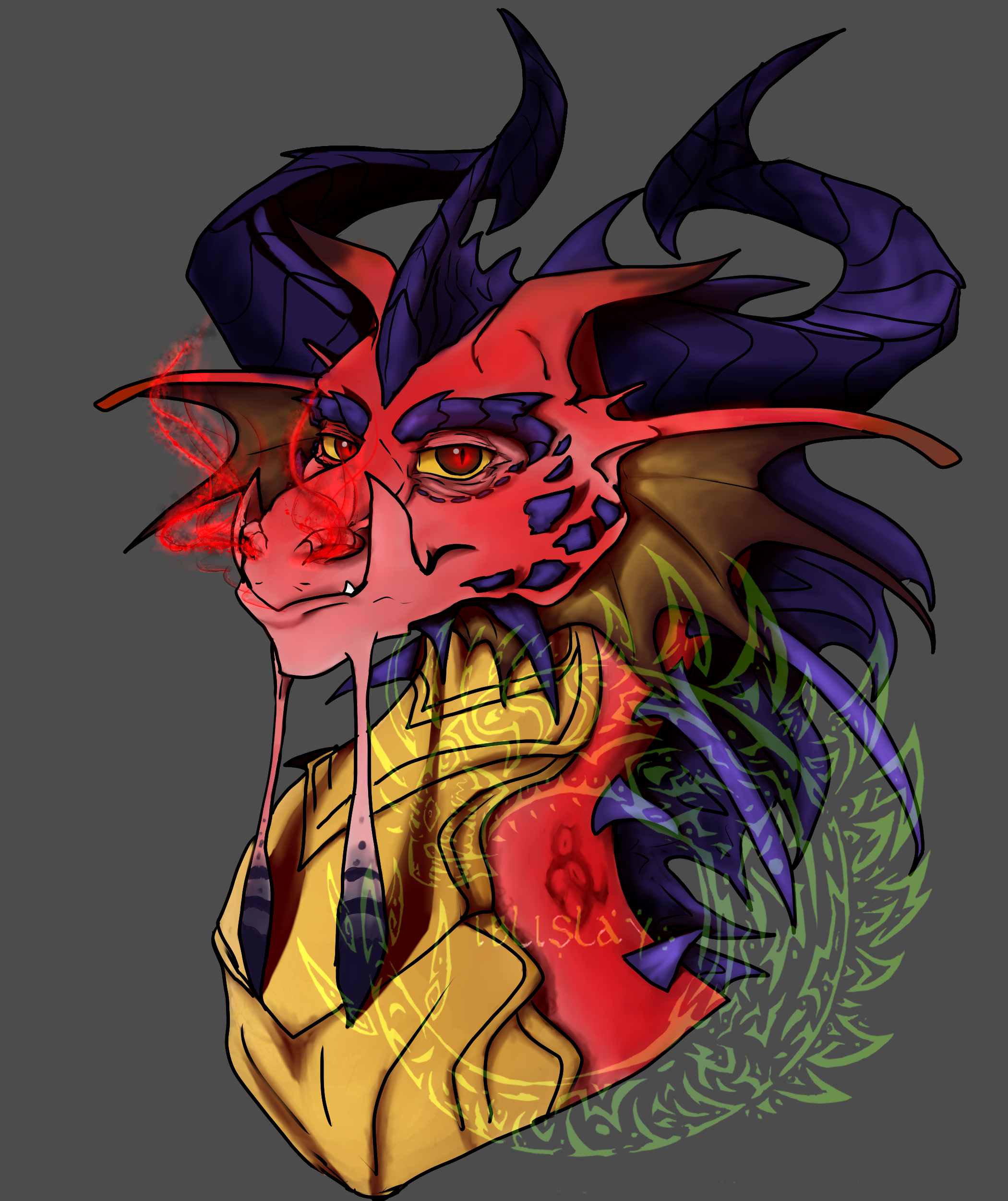 Low key I experimented with stuff on him. but I do like how he turned out. Took me a bit tbh. But if he was ever in that bloody comic I'm slowly fleshing out..Malefor would be more spectral and with shards of those dark crystals that were on the golems or the purple crystal core. Kinda wanted his Ather element trying to break out of him. his breathe has slight red,blue, black undertones.