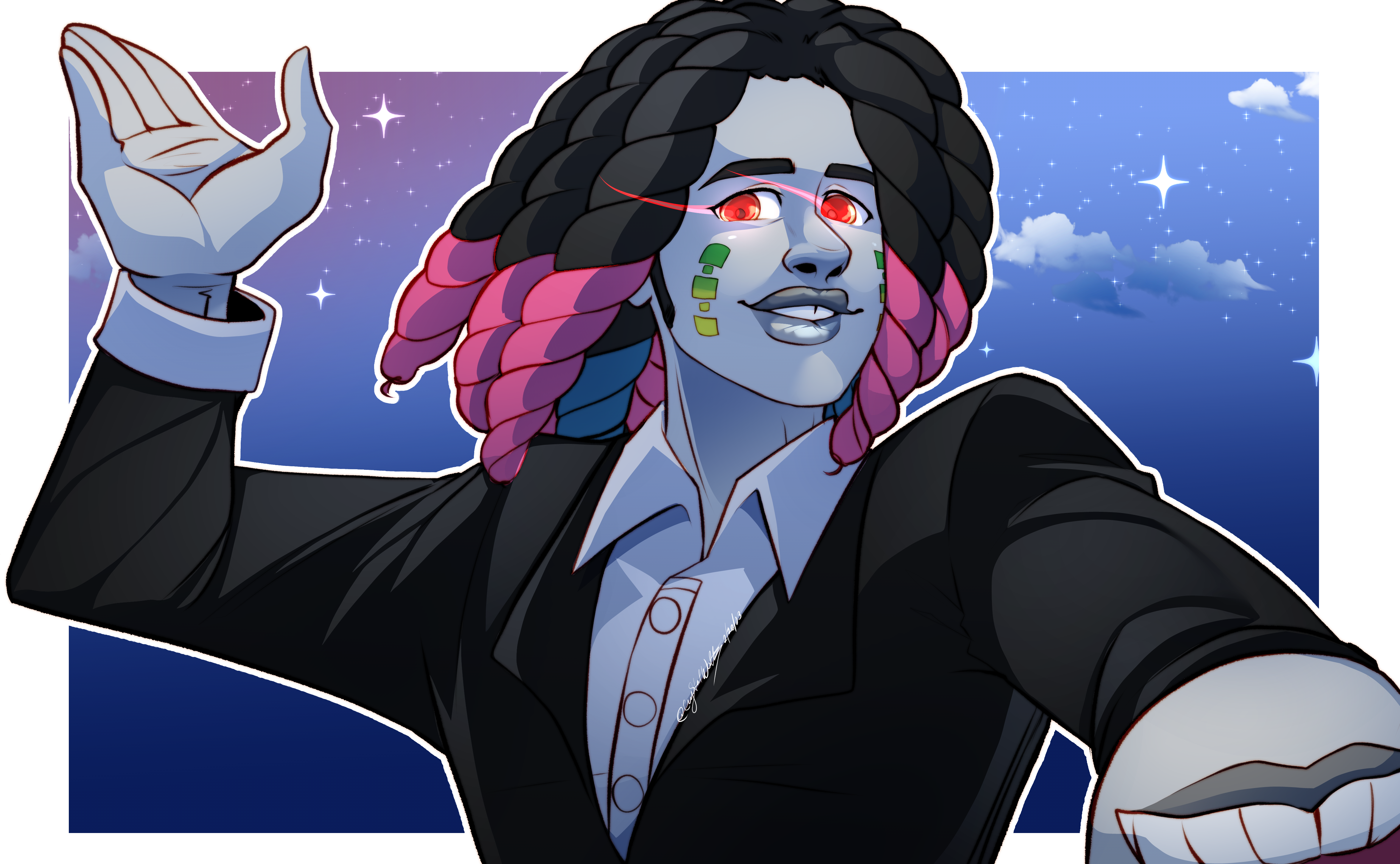 Wah gwan erryone! I'm Crystal Waltz, a crystalline cat fugitive who's on the run from the long claw of the law. I'm a Vtuber who does digital art and Live2D work. I'm also a competitive gamer that competes in Smash Bros and Demon Slayer.