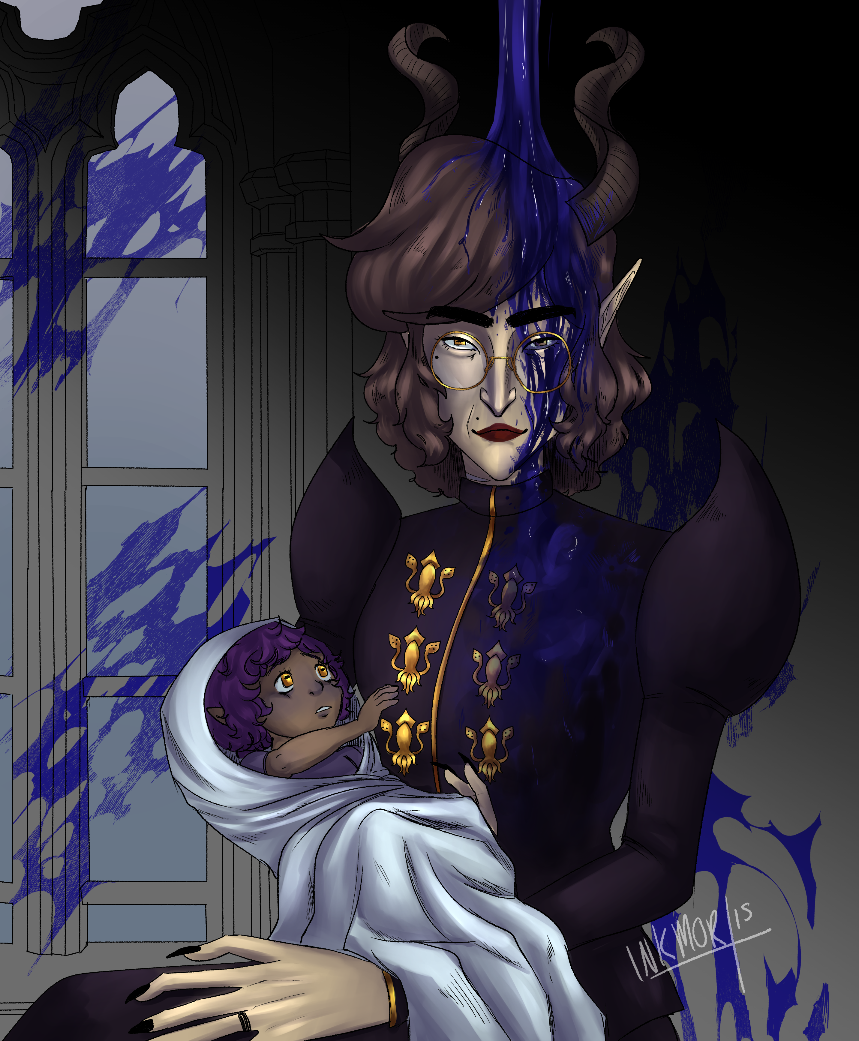 dnd version of my bby girl in my current campaign warlock of cthulhu & shes having a bad time being undead