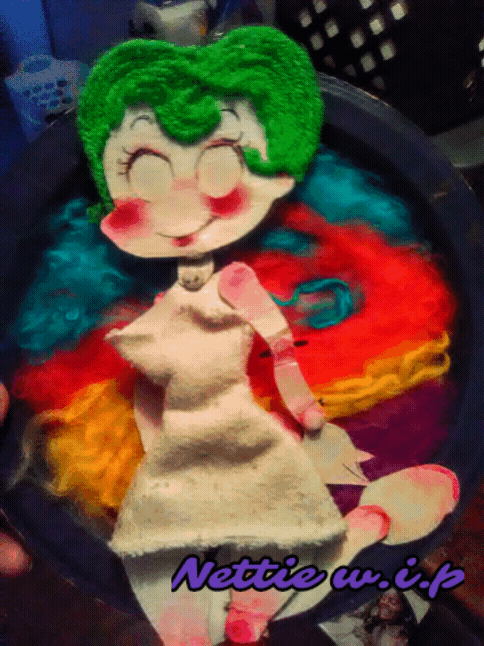 She's almost done guys, I'm so excited! I did say that she was gonna be finished by today, but unfortunately, something came up. I'm gonna be making dinner for my family and I'm not gonna have enough time to finish the animation. I want to get her done and over with before I start dinner though so you have little snippets of what I have planned. I love her, she's so cute, I can't wait to show you off tomorrow! I decided to paint her with watercolors and cheap acrylics I got from the Michaels store. I am gonna put a fabric choker on her So she's gonna look a little bit different next time I reveal her. Anyway, I hope you like this sneak peek of the doll and I hope you have a good day/night! Bye!