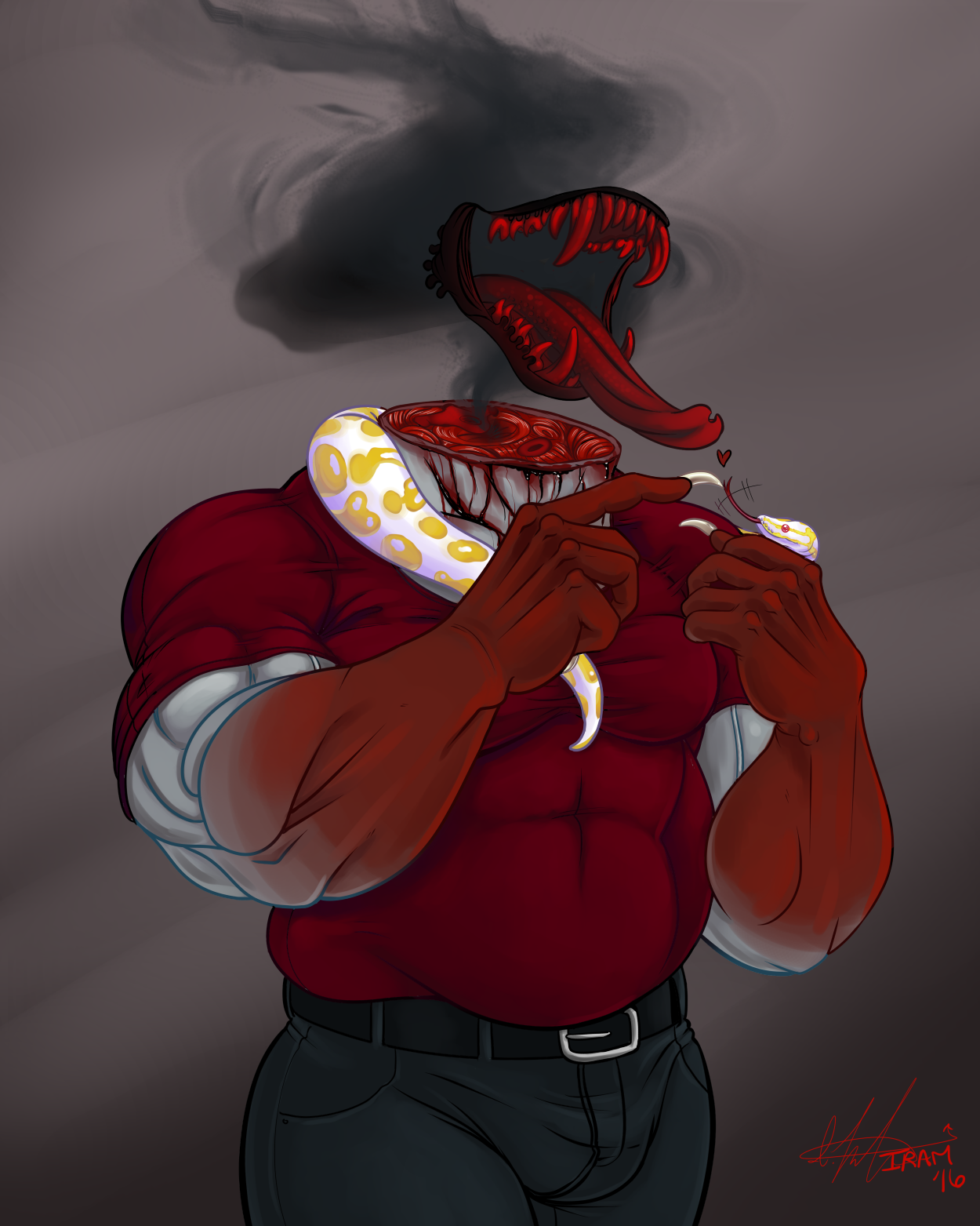 Felt like drawing a monster. deliciouslyuke (my spouse) and I were talking about doing a roleplay about a world were there’s a virus outbreak that turns people into monsters that want to **** and maim. This transformation piece was the result of that conversation. I hope I get to use this guy for something. Had a great time detailing this thing. Enlarge for a better view ;)