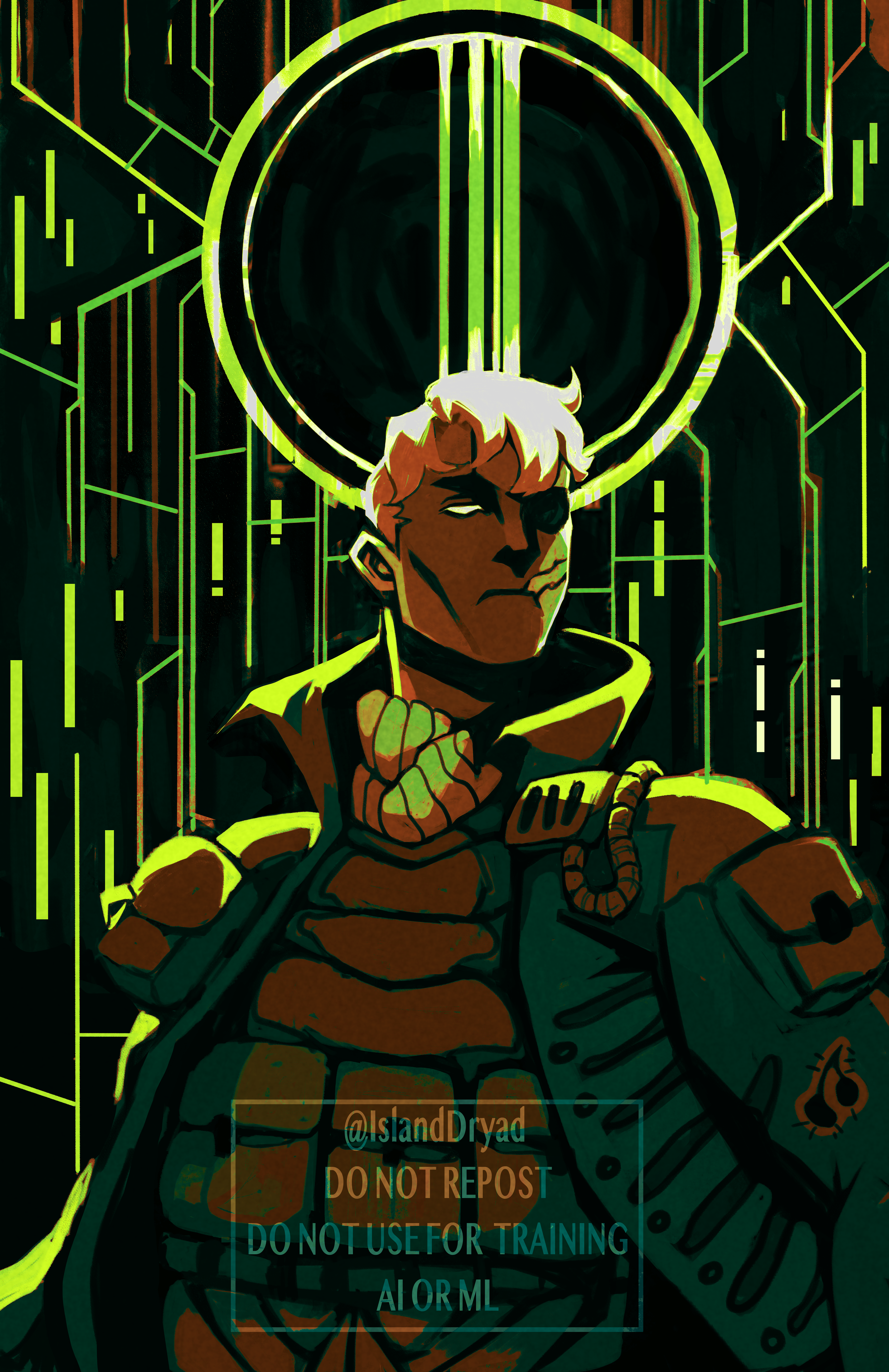 A tarot style painting of my Cyberpunk TTRPG OC’s loyal Bodyguard and confidantA tarot style painting of my Cyberpunk TTRPG OC’s loyal Bodyguard and confidant0 Comments 0 Shares 23 Views