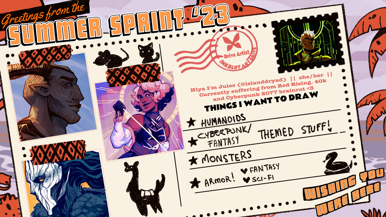 Hi I'm Jules, I'm a freelance Illustrator from the caribbean. I'm new to Inkblot and I love making art of my OCs and I'm interested to see how I can customize posts here and maybe post some lore bits about my OCs. If you have any questions I'll try to answer them, the interface is making my struggle a little bit but I'm eager to learn how to use it!Hi I'm Jules, I'm a freelance Illustrator from the caribbean. I'm new to Inkblot and I love making art of my OCs and I'm interested to see how I can customize posts here and maybe post some lore bits about my OCs. If you have any questions I'll try to answer them, the interface is making my struggle a little bit but I'm eager to learn how to use it!0 Comments 0 Shares 23 Views