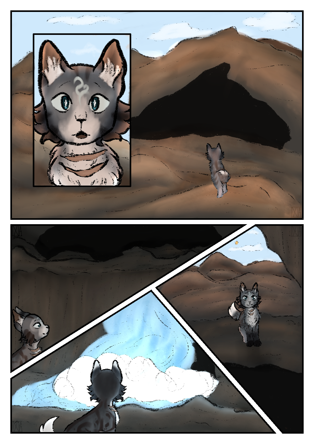 so torrentstar’s been wandering around the mountains but hasn’t found a set home for the clan. but he found a cave in this comic that he considers to be the perfect home for Stormclan. On the bottom half of the comic page, the left panel is him looking up at the leader’s den, the middle is the little waterfall that’ll be by the medicine den, and the right one is the middle of camp.so torrentstar’s been wandering around the mountains but hasn’t found a set home for the clan. but he found a cave in this comic that he considers to be the perfect home for Stormclan. On the bottom half of the comic page, the left panel is him looking up at the leader’s den, the middle is the little waterfall that’ll be by the medicine den, and the right one is the middle of camp.0 Comments 0 Shares 5 Views