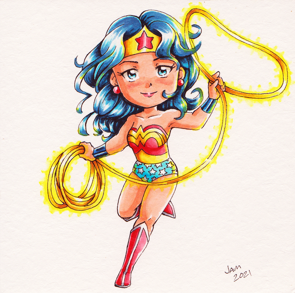 A classic Wonder Woman that I drew for my mom for Mother's Day in 2021. She's one of my mom's favorite characters.