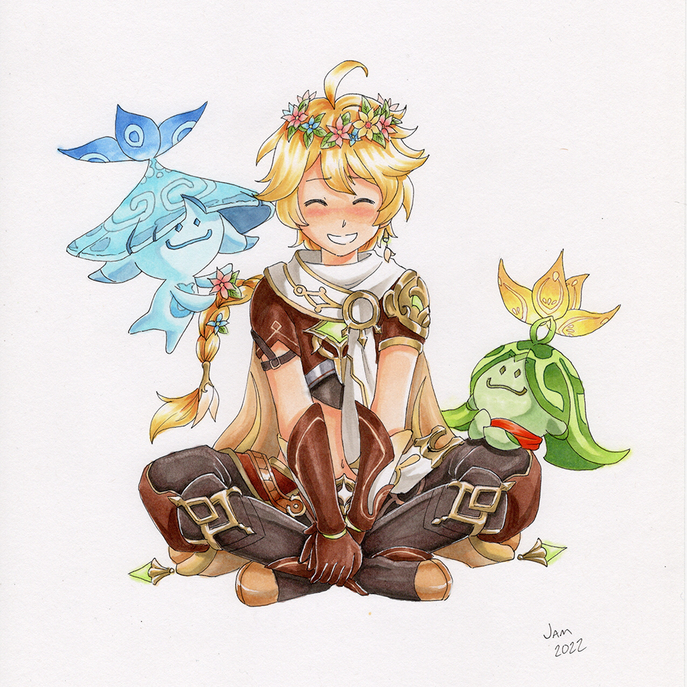 The Aranara are so cute!Copic drawing I did this past year as a gift for Aether's voice actor when he was doing a signing event. The Aranara are so cute!0 Comments 0 Shares 33 Views -
