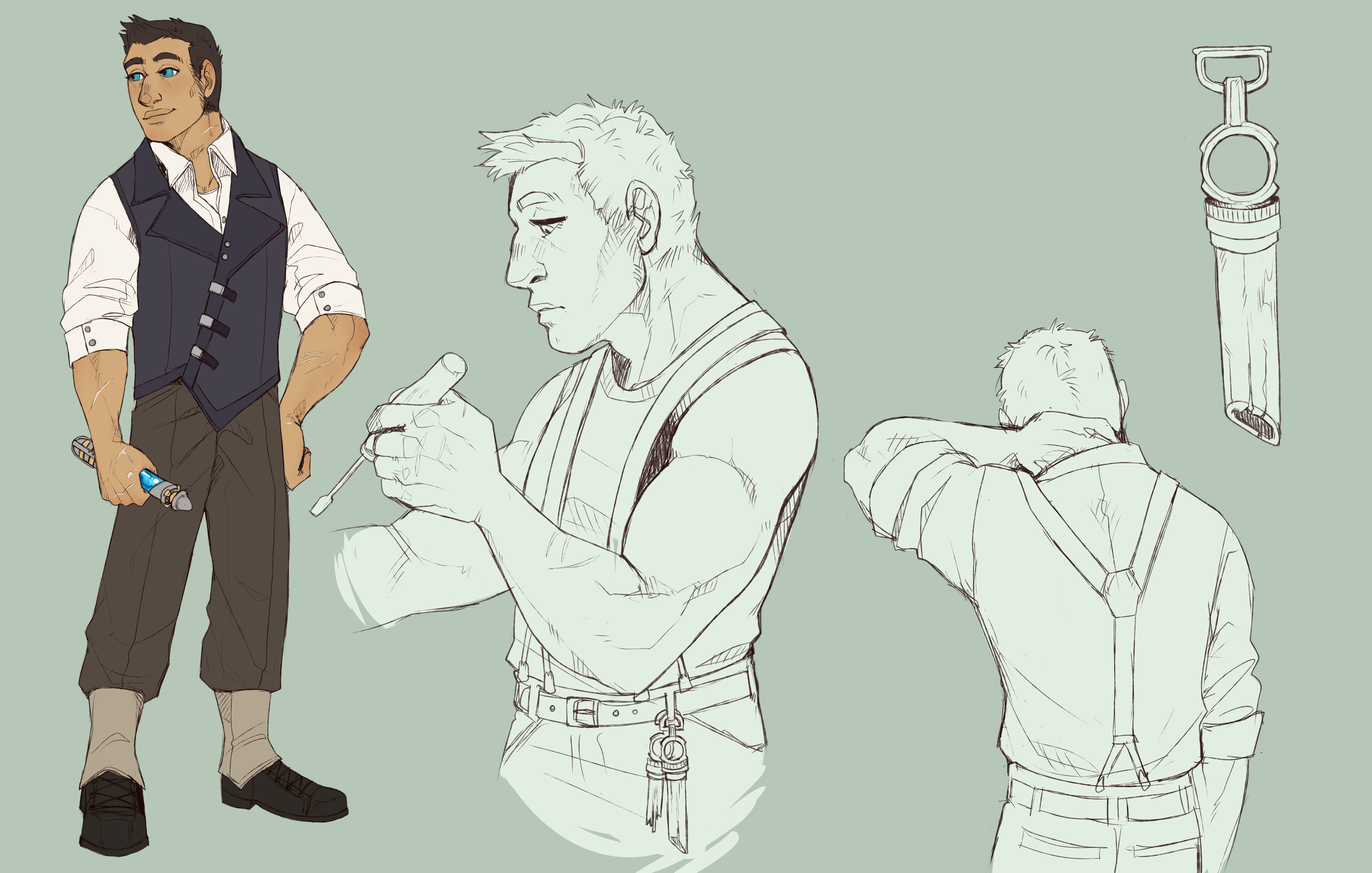 More Dishonored OC stuff. Gabriel works on the rail systems and cars that move around the city. He's from a more higher class district and keeps bonecharms because he thinks they're cool. He doesn't know what they actually are.