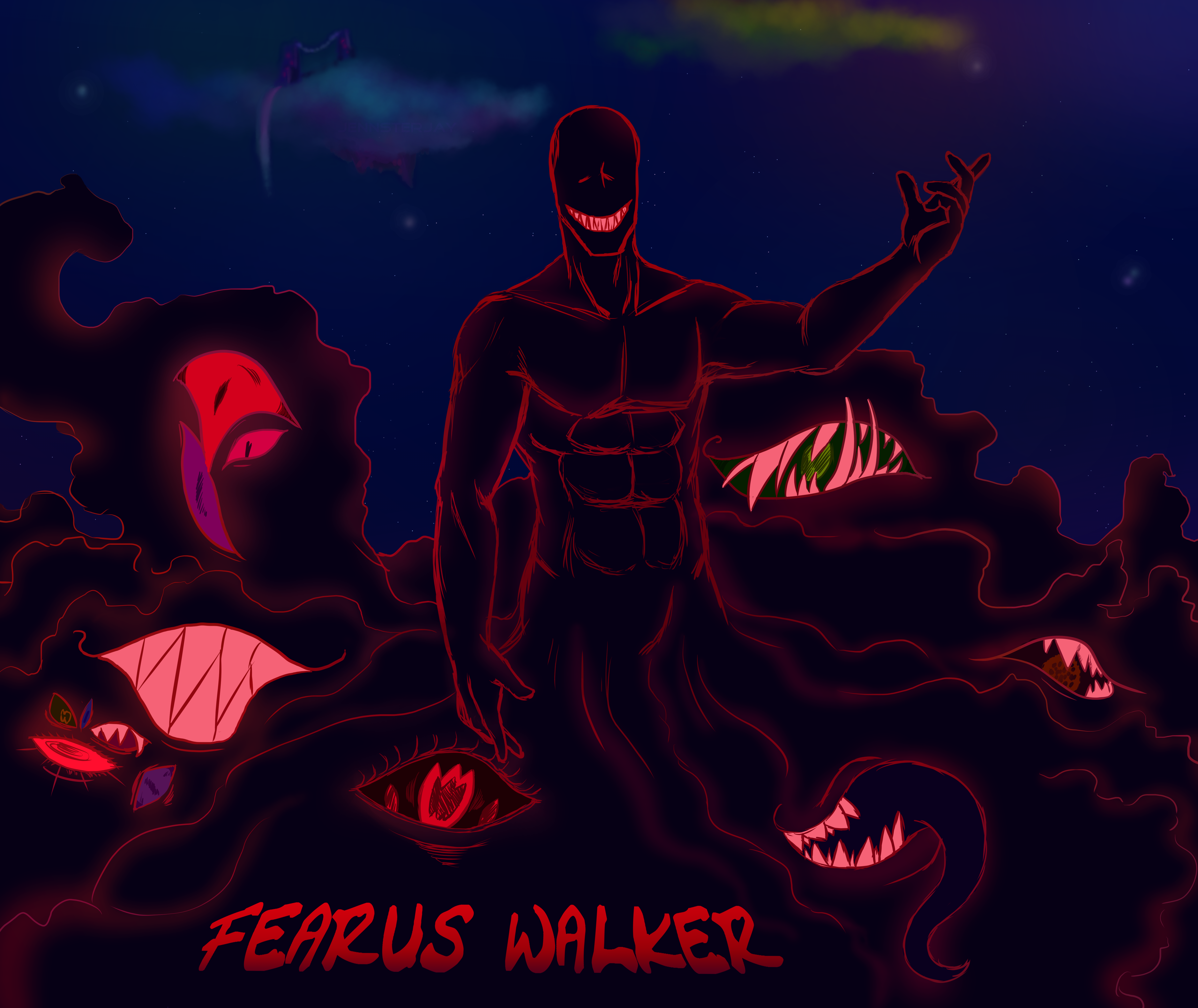Fearus is a being from the Astral Plane that helps keep the balance between realms across time, space, and different planes of existence (Physical Plane, Astral Plane, etc.). He does this by using people's fear as a motivator, such as transforming into something that will scare someone into getting back on the path to their destiny. Though people make him out to be villianous, he's a simple sarcastic and ironic guy who doesn't care much about what other's think.