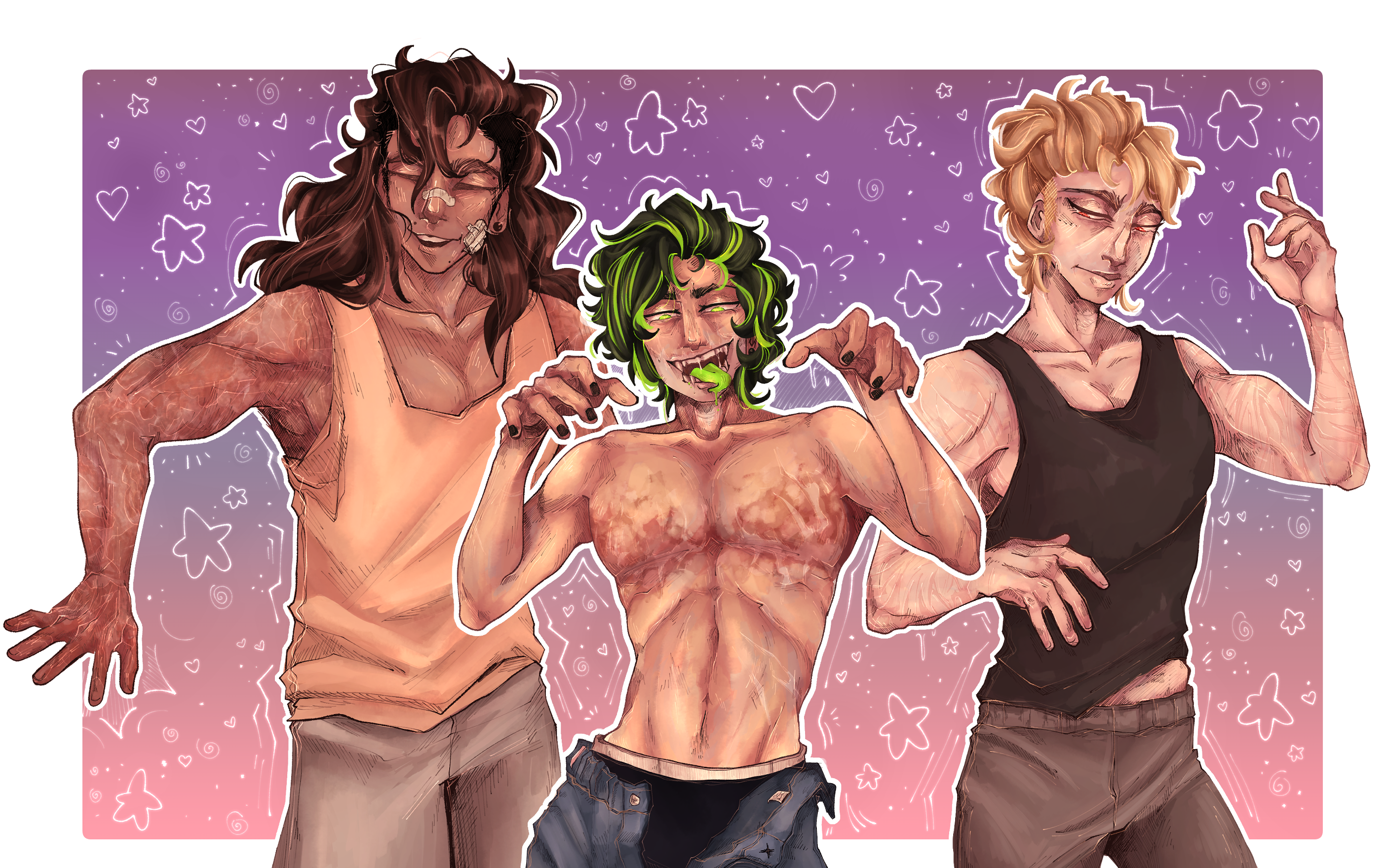 these three have been with me for so so long and i always hold them so close to my heart, and i’m finally back to working on their story! very exciting!! it’s a story abt mutants & rebellion, and of self discovery ^-^i felt that an appropriate first post could only be one of these three; my Terrible Trio of balanced parts stupidity and bloodlust <3 *from left to right; Kieran, Spit, Iven <3 these three have been with me for so so long and i always hold them so close to my heart, and i’m finally back to working on their story! very exciting!! it’s a story abt mutants & rebellion, and of self discovery ^-^0 Comments 0 Shares 8 Views