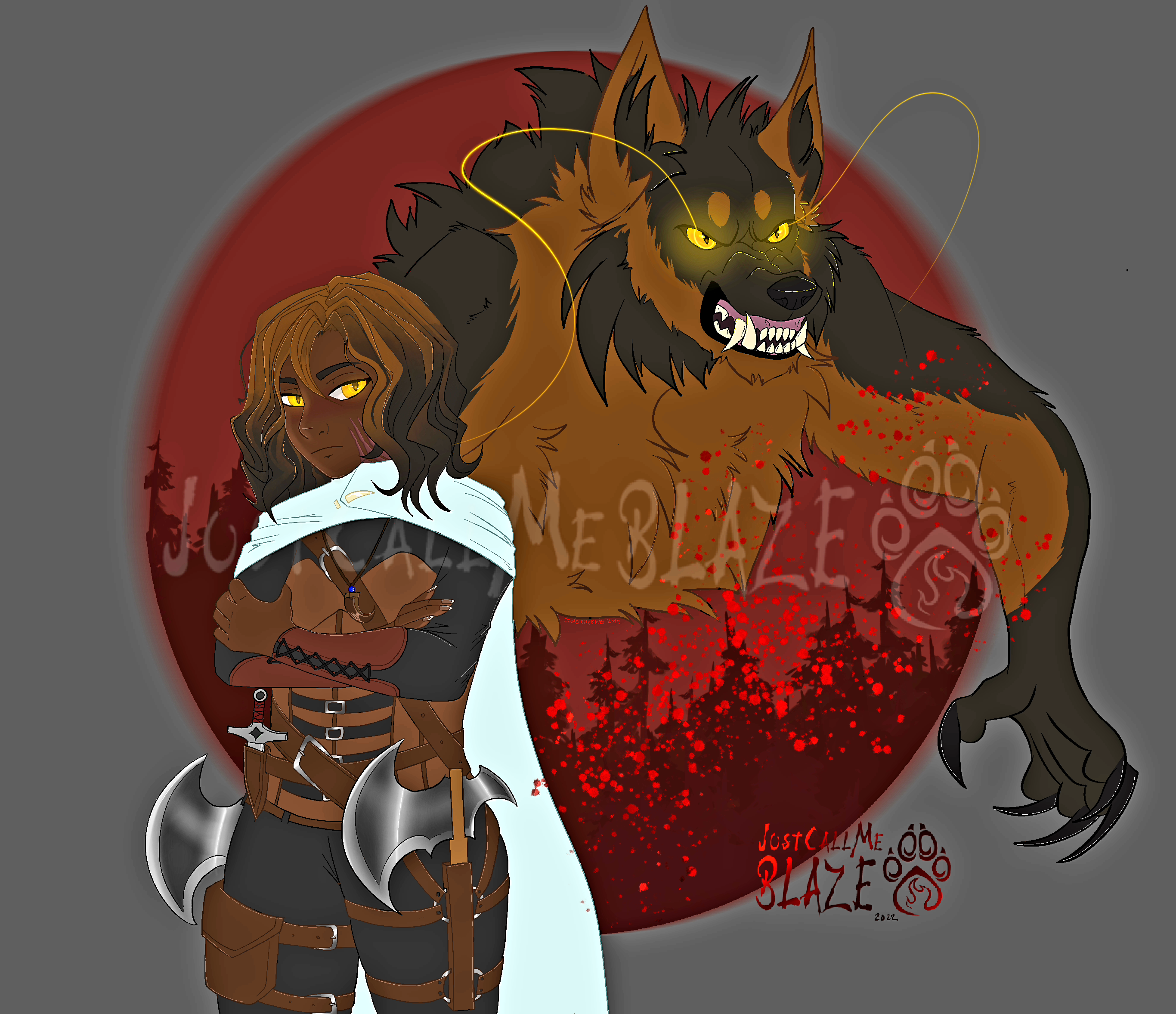 This is my most current dungeons and dragons character and I am soooooo in love with her!! She's a dangerous duel weilding barbarian wolf shifter! She's stubborn and uninviting at times but she's protective of the ones worthy enough to earn her loyalty.