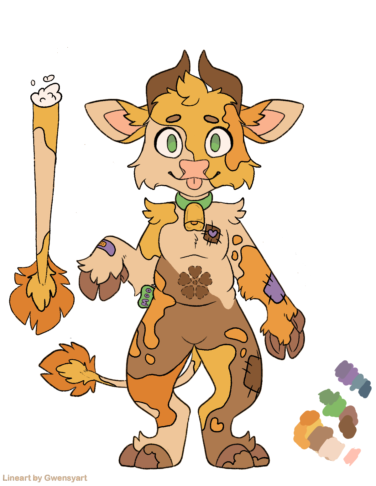 I will most proabbly change him up a bit still but what do you think so far? I'd appreciate any design help since I dotn do designs too much. Original line art base by Gwensyart.Hey so this is Leo V1, since I'm still working on improving him but I really feel like sharing him so long. I want to make him a plush cow inspired by sunflowers, the sun and just being happy and cute. Leo obviously loves lazing in the sun, soaking up as much heat as he can. He enjoys accessorising with bandages (he says its because its cute, we all know its because he's clumsy), wearing warm and comfy clothing and giving gifts to those he likes. He doesnt mind his clothing being a little torn and aged, sinc he agrees that it tells a story of use and love. I will most proabbly change him up a bit still but what do you think so far? I'd appreciate any design help since I dotn do designs too much. Original line art base by Gwensyart.0 Comments 0 Shares 2 Views -