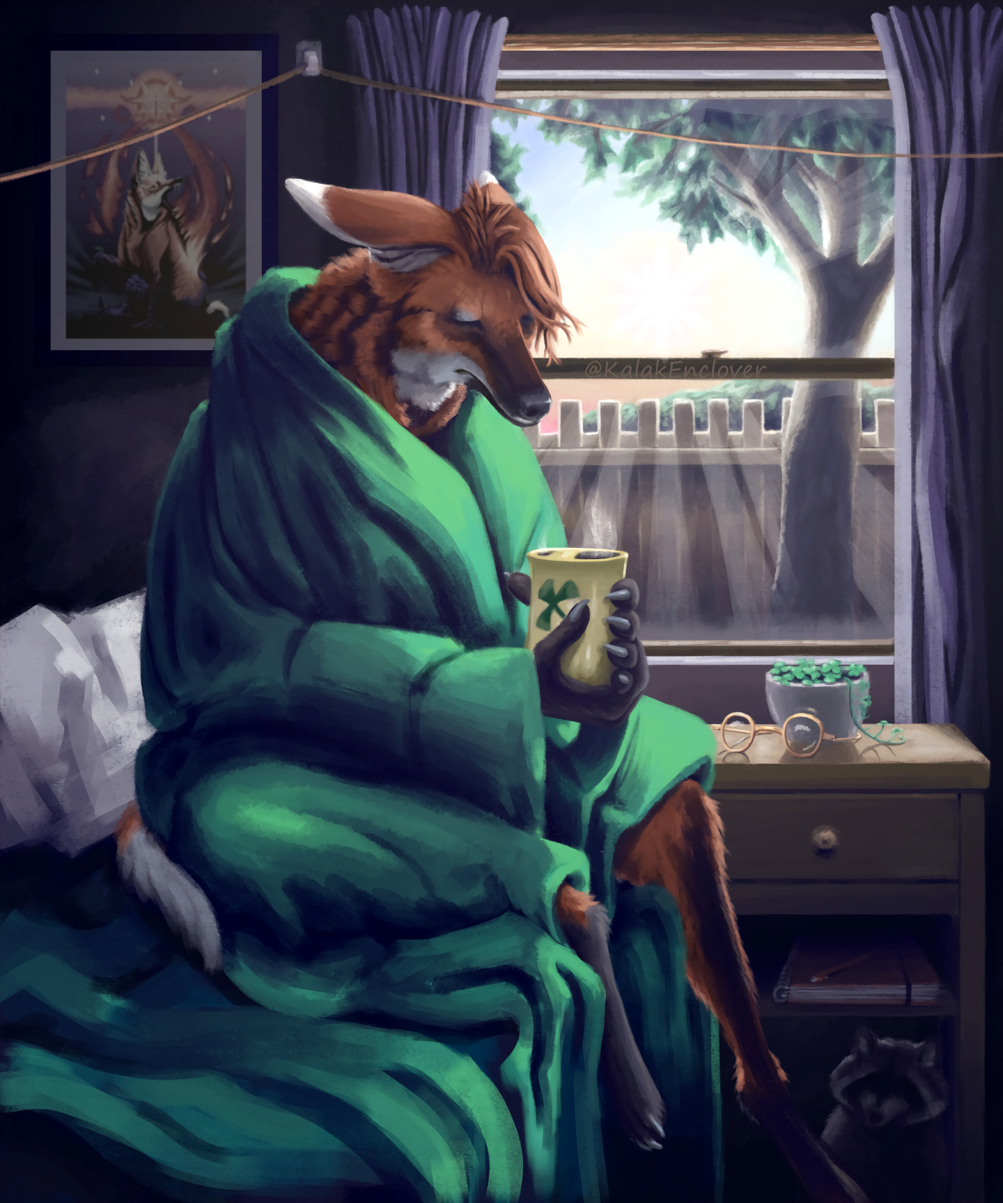 For the framed picture in the background, I used an unfinished piece I had abandoned prior to making this one.A piece of my 'sona trying their best to wake up. They're not a morning person. This was my first piece depicting an indoor environment in a very long time. I felt I had done well despite the anomalies. For the framed picture in the background, I used an unfinished piece I had abandoned prior to making this one.0 Comments 0 Shares 6 Views
