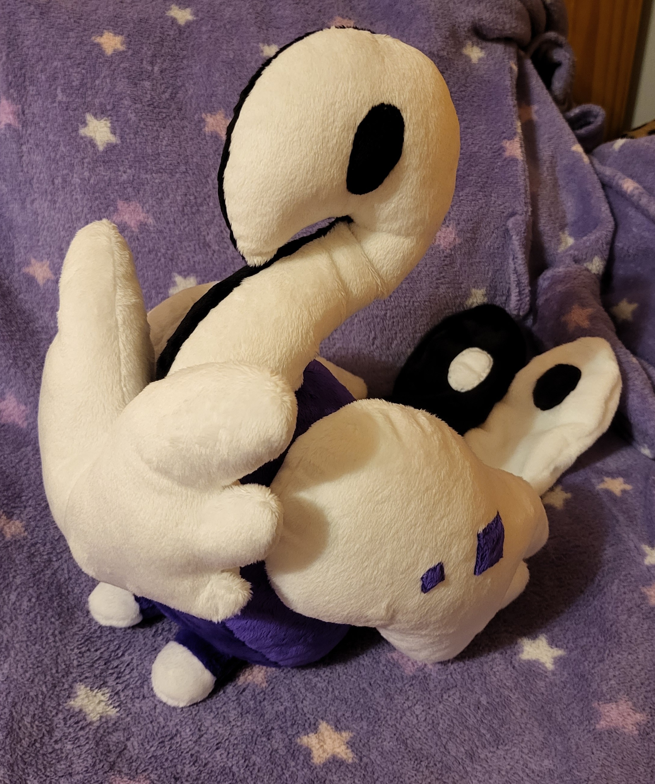 And this is it! This is what I've been working on for myself for the past week or so. Have I ever mentioned I make plushes? Cuz I do, and here's an example of one I just recently finished!! This is a self indulgent project for myself and also my first time working with minky. And they turned out great! <333 There are a few rough edges I have with this plush, mainly just minor nitpicks like asymmetry and whatnot. But otherwise, I adore this funny fella!!