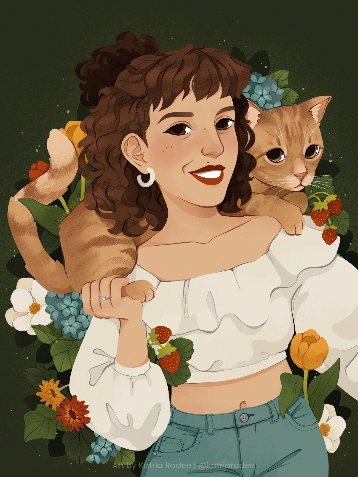 This one took me a while but I enjoyed every moment of working on it and I'm really happy I finally have a portrait with my cat Roo and all the florals and plants I love!Hello Inkblot! I thought it was fitting to introduce myself with my newest self-portrait. This one took me a while but I enjoyed every moment of working on it and I'm really happy I finally have a portrait with my cat Roo and all the florals and plants I love!0 Comments 0 Shares 3 Views