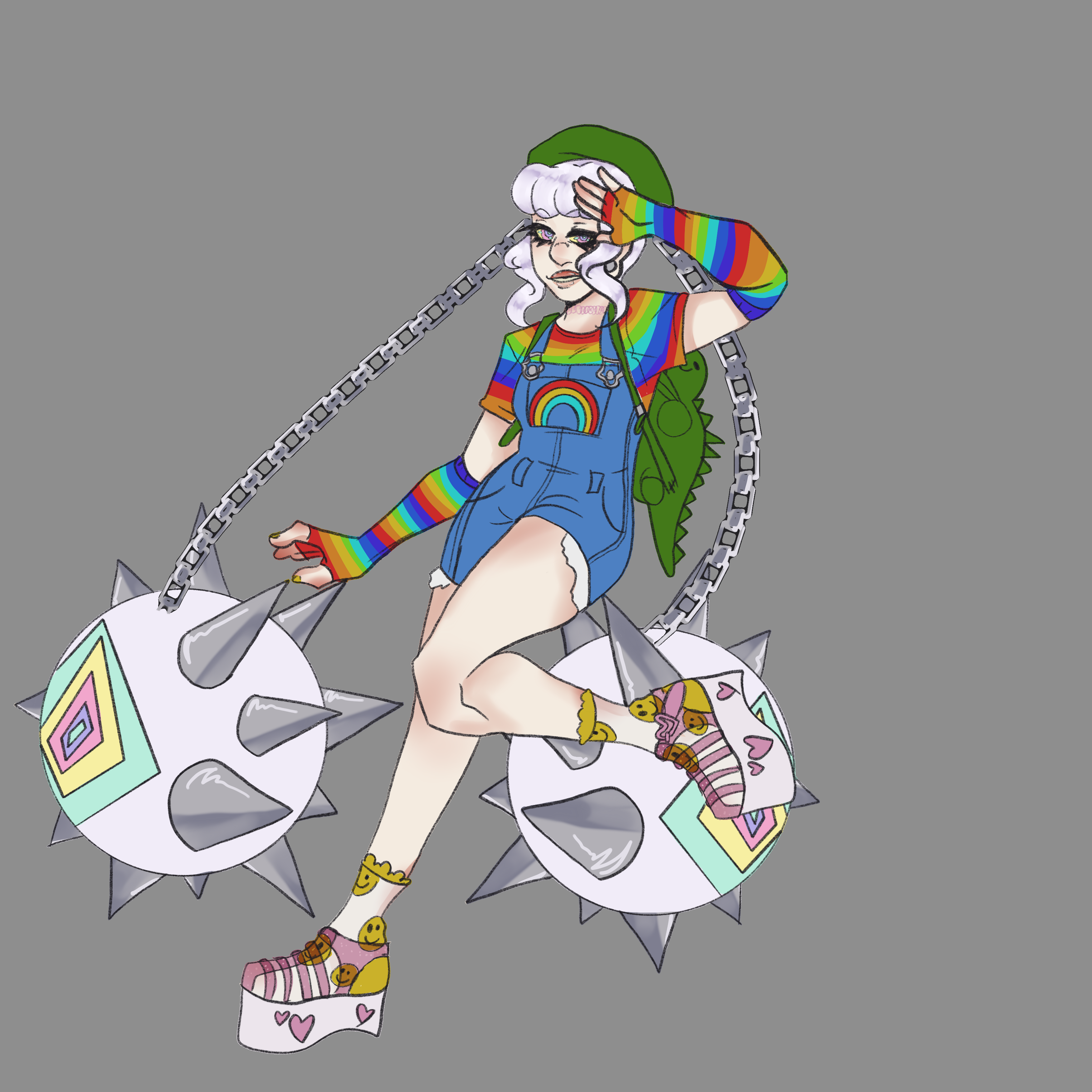 Sabrina Drakos- she’s 43 and uses she/they pronouns, they have the ability to summon demonic weapons