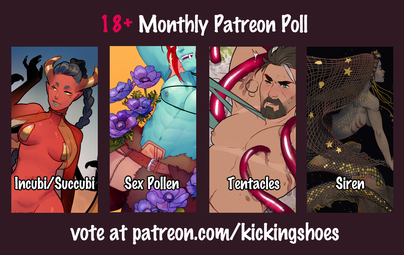 Finished this month's spicy illustration set for Patreon. You can check it out [here](https://www.patreon.com/kickingshoes)Finished this month's spicy illustration set for Patreon. You can check it out [here](https://www.patreon.com/kickingshoes)0 Comments 0 Shares 7 Views