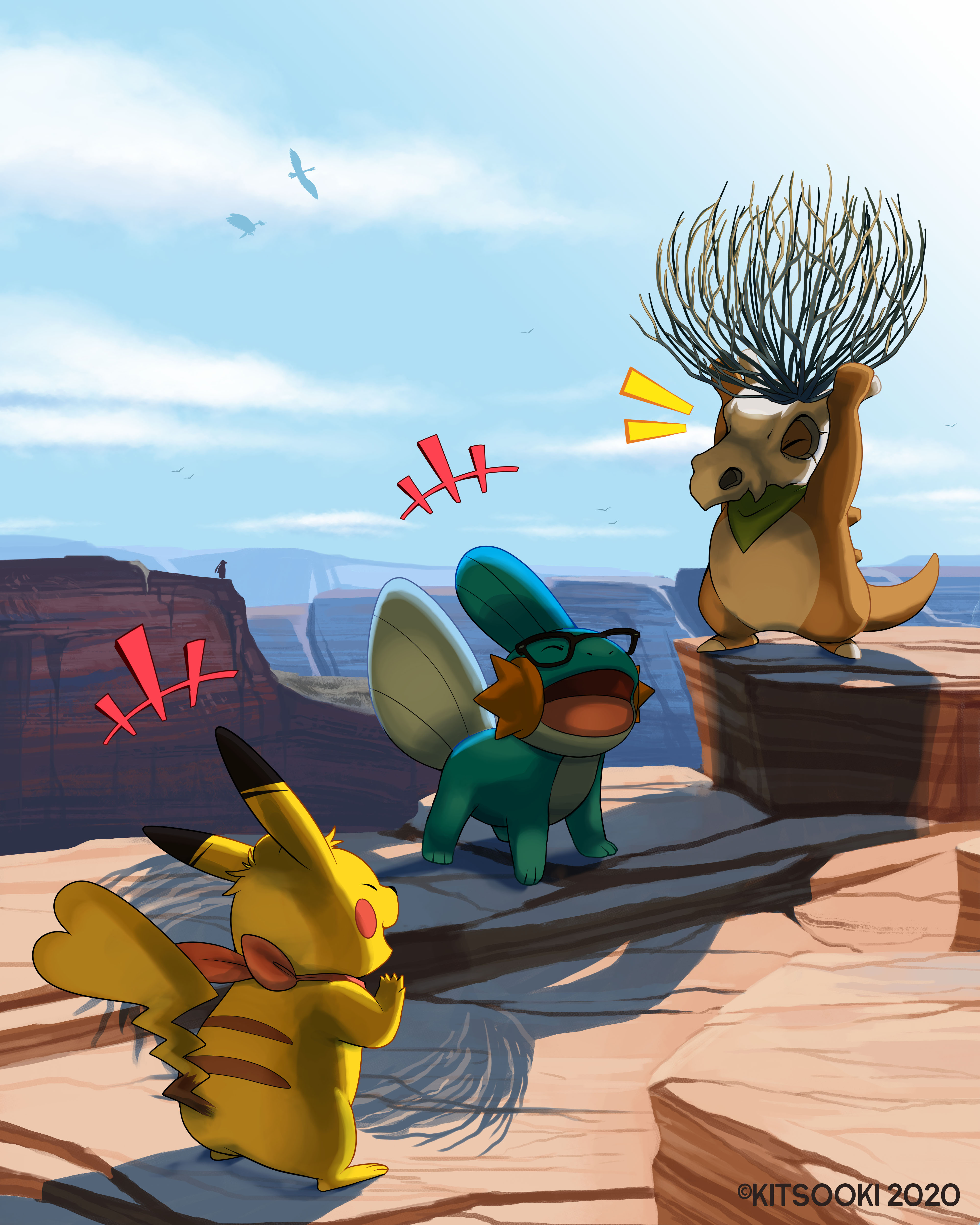Commission for a friend of mine featuring us and another friend as the Pokemon we were given at the start of Pokemon Mystery Dungeon. I had a lot of fun with this one and tried to emulate the cover art style of the original PMD games for the characters with a bit of my own flare to it.