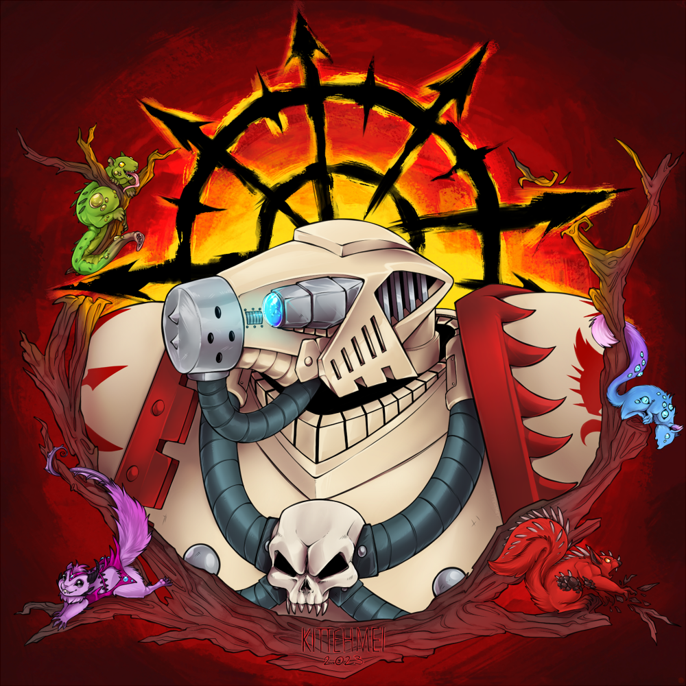 ------ Bust commission for [Klawsnappa](https://www.furaffinity.net/user/klawsnappa) of his undivided Chaos Marine! My client has a kitbashed model that I used as reference for this and his entire homebrew chapter is squirrel themed (which is adorable). I LOVE his little minions; I'm glad I got do make my own designs for them. Each squirrel represents one of the chaos gods and I can't choose which one is my favourite of these. I'm most torn between the Nurgle and Tzeentch one I think x) ------ Art © KittehMei || Character © Klawsnappa || Warhammer © GamesWorkshop > Do not re-upload this on other sites without credit and source, thank you ♥ You do not have permission to use, copy, trace, steal, scrape, etc. etc. this artwork. If you would like to use this or any of my works please feel free to contact me :)0 Comments 0 Shares 25 Views -